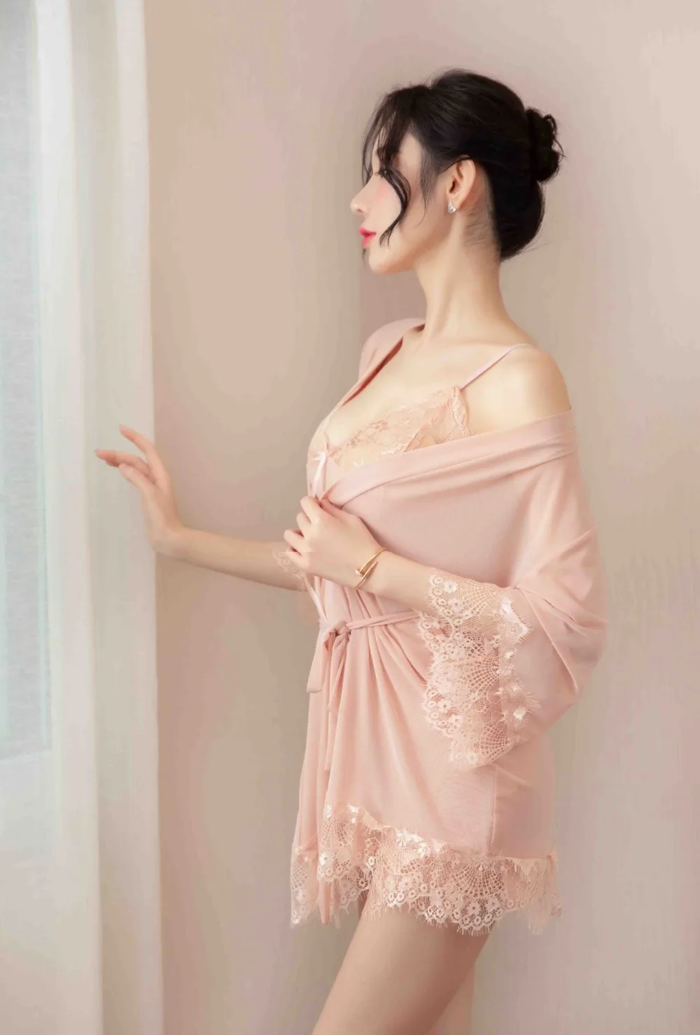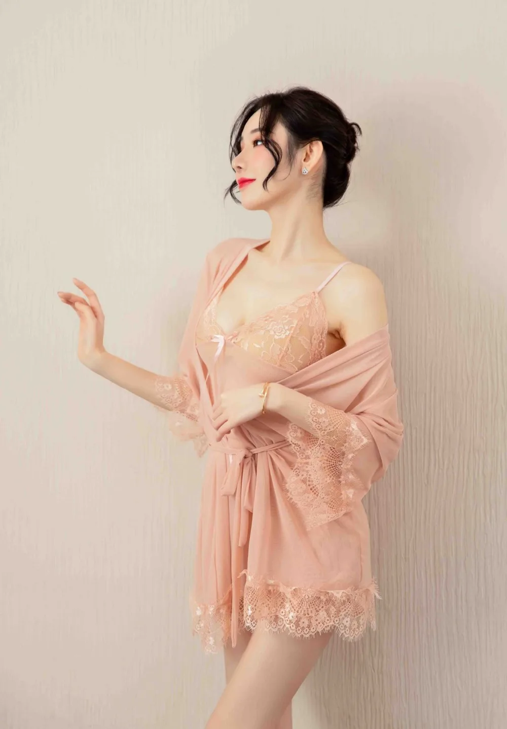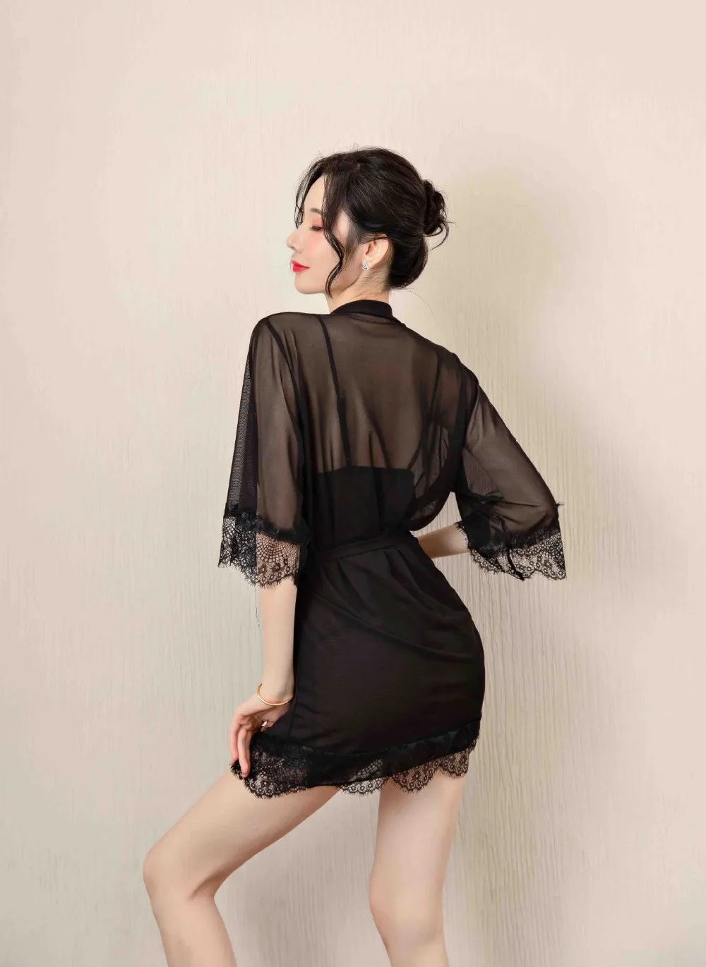 Халат-кимоно женский кружевной, пикантный комплект, ночная рубашка,...
