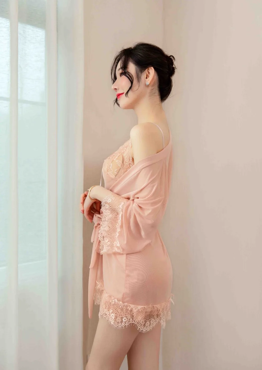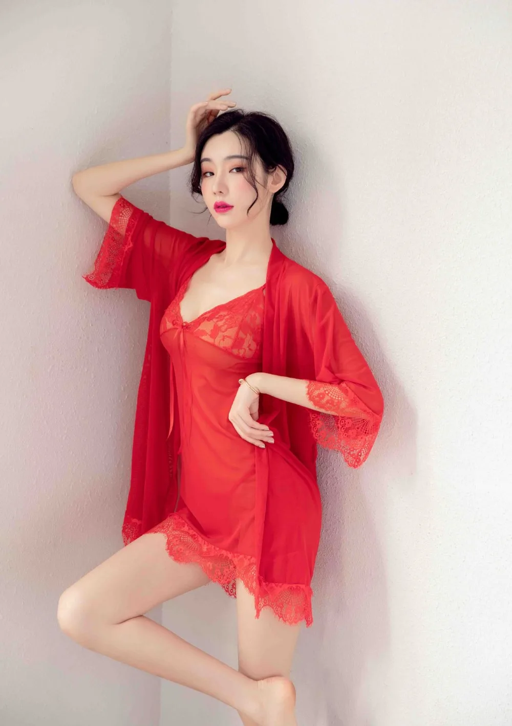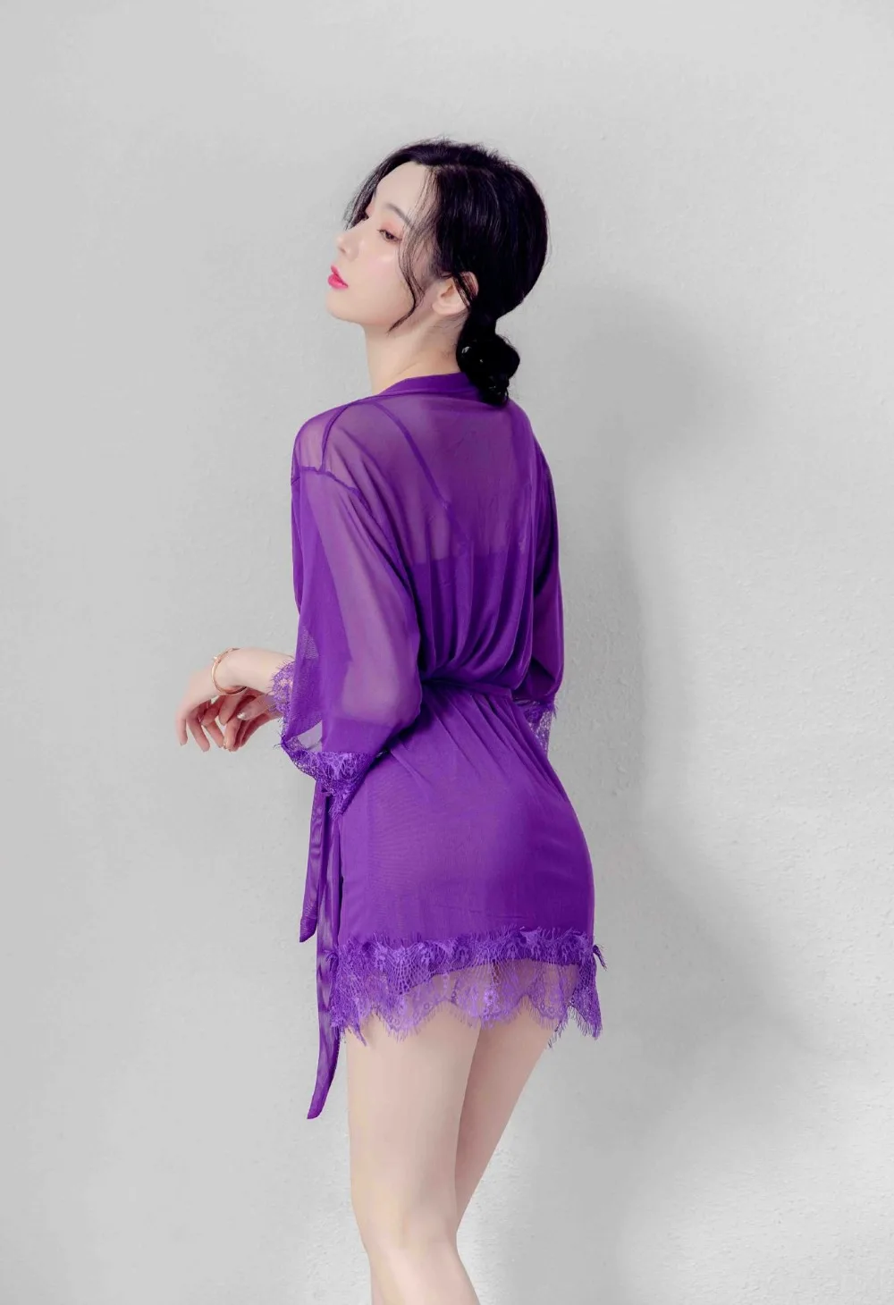 Халат-кимоно женский кружевной, пикантный комплект, ночная рубашка,...
