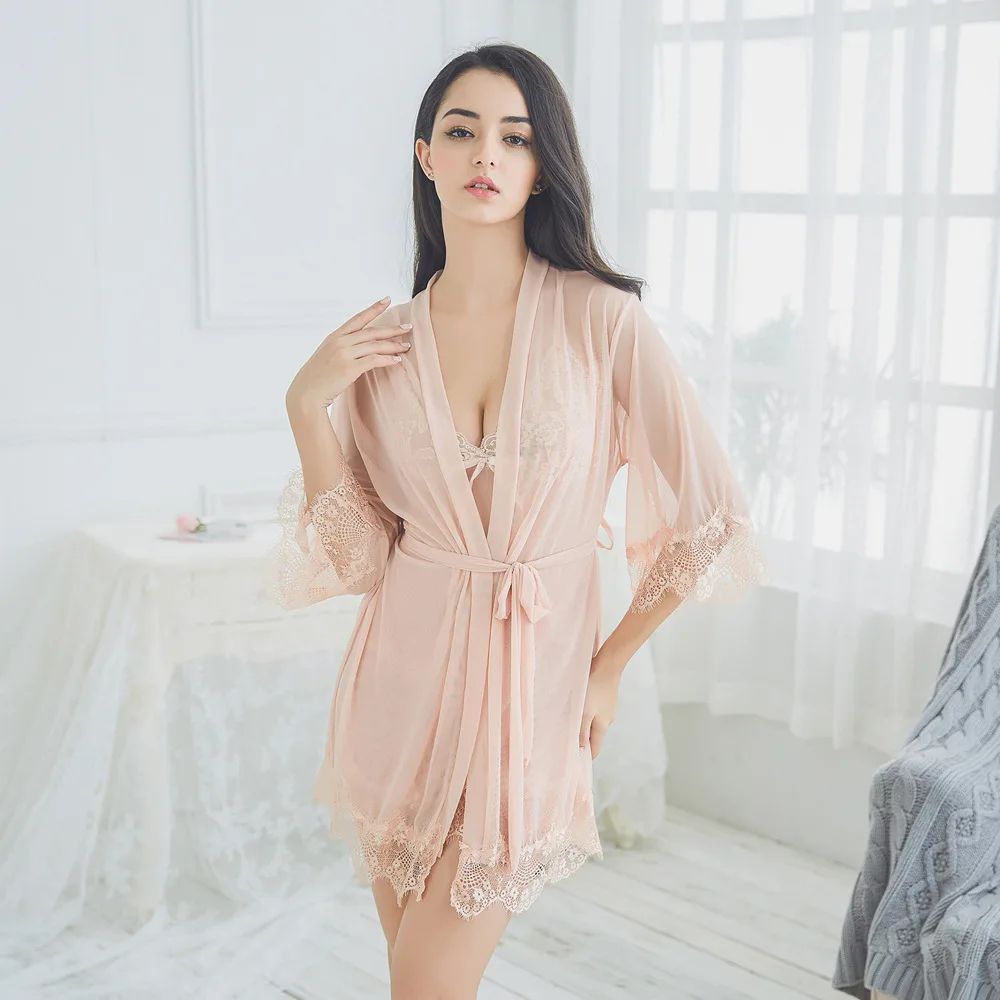 Сексуальное нижнее белье, комплект женского Халата, кружевной халат...