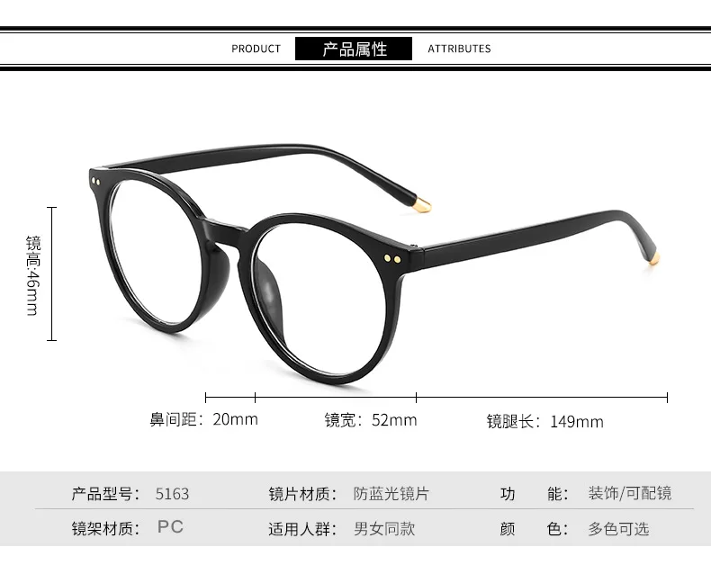 Круглые очки для женщин и мужчин, компьютерный анти-синий светильник, оправы для очков, прозрачные оптические поддельные очки для близорукости