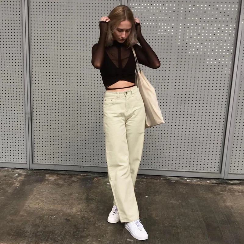 Свободные джинсы IAMSURE для женщин, крутые базовые брюки с высокой талией, винтажные повседневные длинные широкие брюки, Дамская уличная одежда