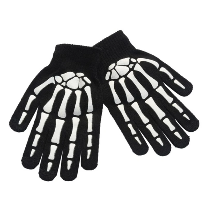 Перчатки для мужчин и женщин, Нескользящие митенки с эффектом ужаса, черепа, когтей, скелета, зимние теплые