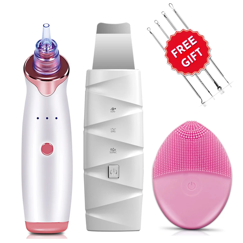 Набор для очистки лица, вакуумный прибор для удаления угрей, ультразвуковая силиконовая щетка для очистки кожи, электрический набор для очистки лица