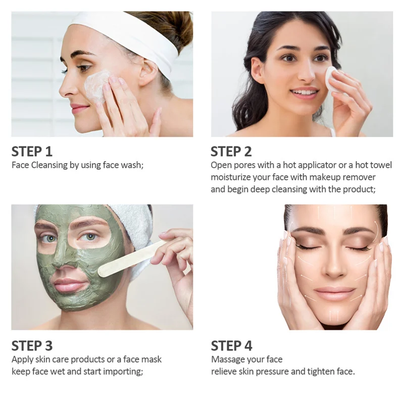 Режим 1: Намочите лицо водой; Нанесите очищающее средство для лица и включите режим «Соника»; Слегка Наденьте лопату на поры на лице на 5 мин, затем очистите водой. Режим 2: Откройте поры горячим аппликатором или горячим полотенцем на 5 мин и нанесите питательную эссенцию; Переключитесь на режим ''EMS'', слегка перемещайте головку лопаты против пор на вашем лице на 5 мин, чтобы повысить метаболизм и увлажнение кожи; Очистите водой, Используйте испаритель холодного спрея для лица в течение 10 минут, чтобы сузить поры. Режим 3: очистите лицо водой; Откройте поры горячим аппликатором или горячим полотенцем на 5 мин, нанесите экстракт черных точек на 10 мин; Переключитесь на режим "ион"; слегка прижмите головку лопаты к порам на лице на 5 мин, затем очистите водой.