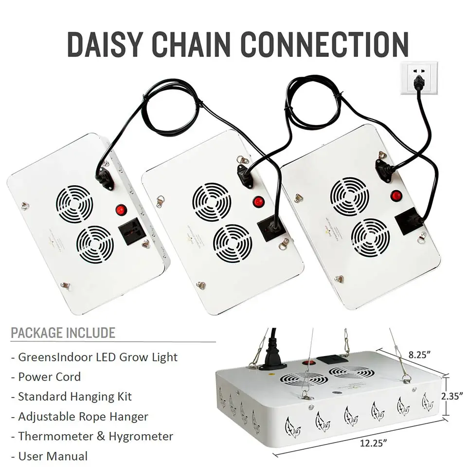 Посылка 240 светодиодов/100 светодиодов-GreensIndoor светодиодный светильник для выращивания-Шнур питания-Стандартный подвесной комплект-Регулируемая Вешалка на веревку-Гигрометр-Руководство пользователя