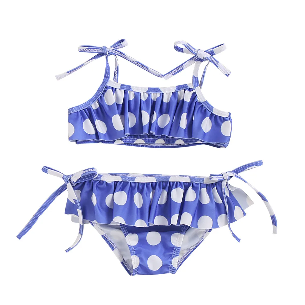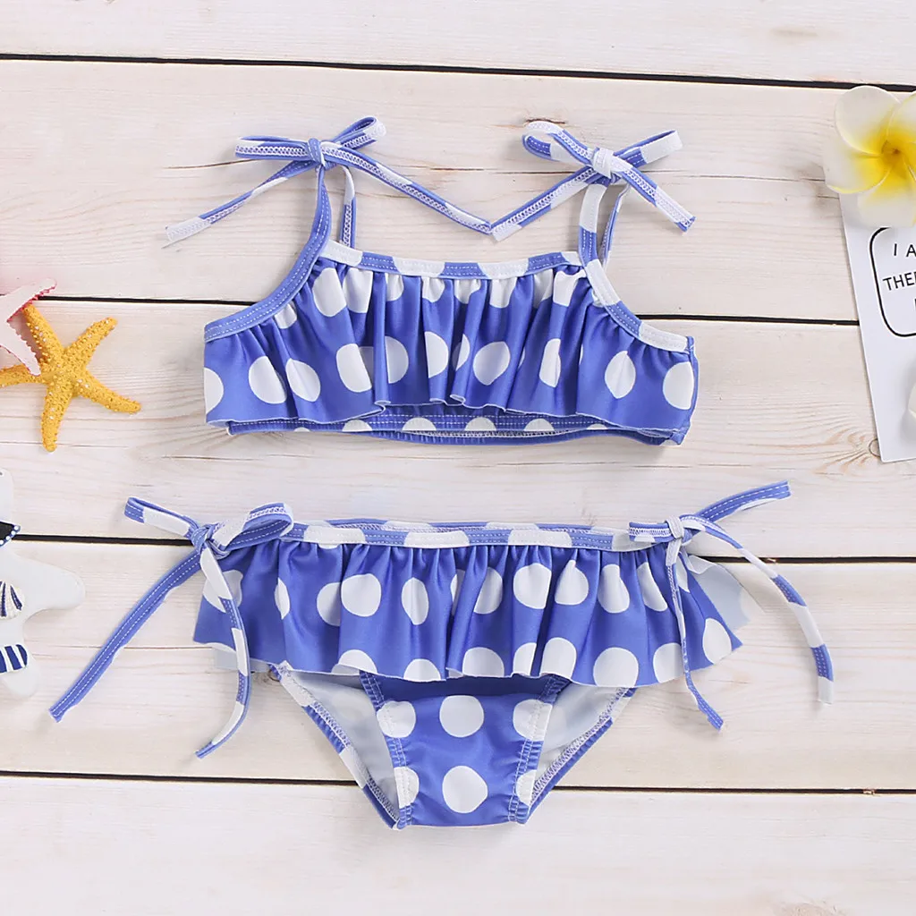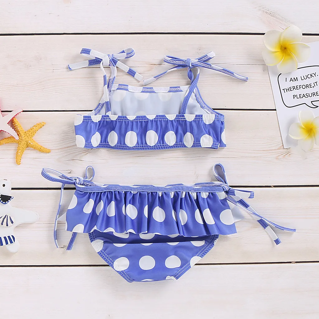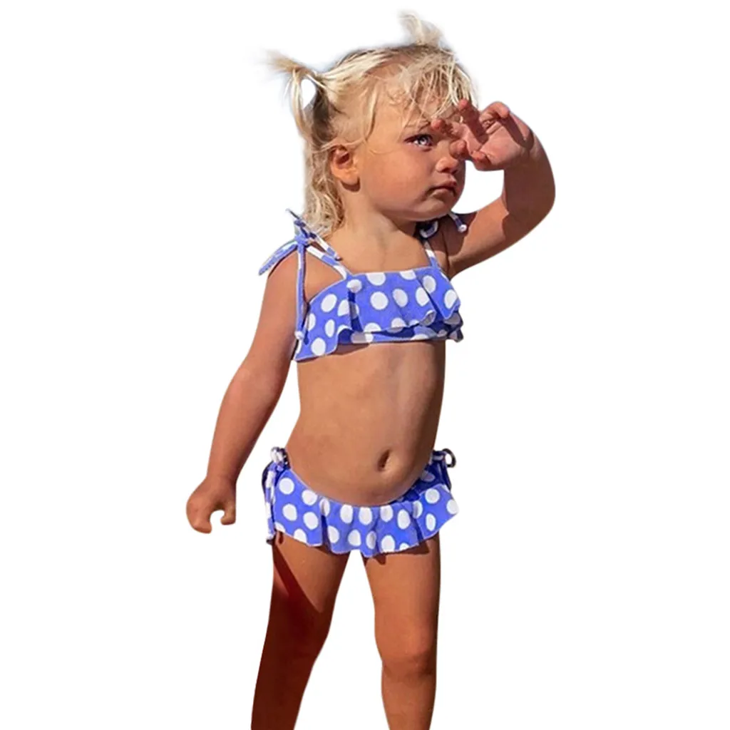 2021 Новинка, купальник для маленьких девочек, летний купальник-бикини из двух предметов для маленьких девочек, танкини в горошек без рукавов, одежда для плавания на 0-5 лет