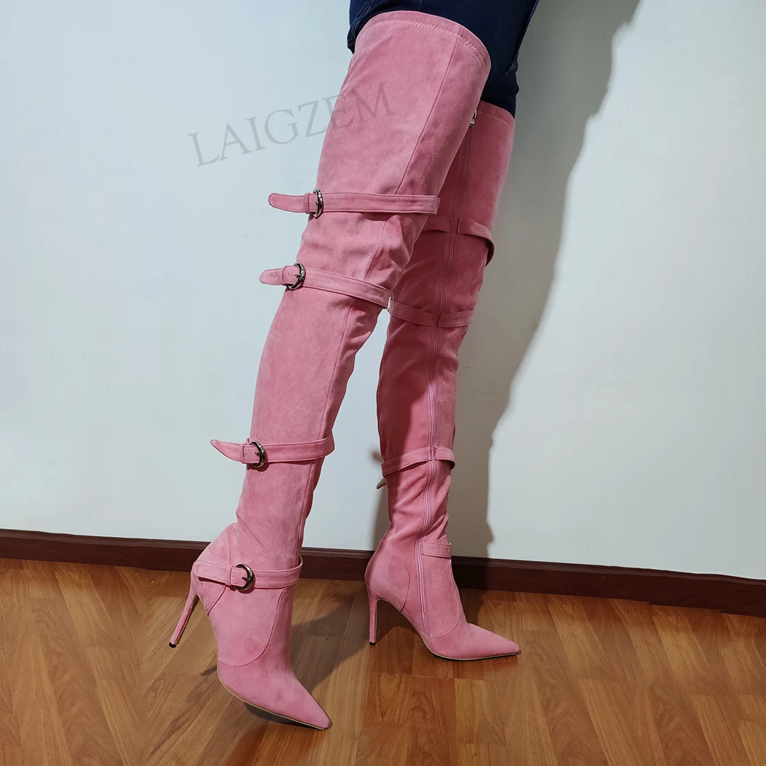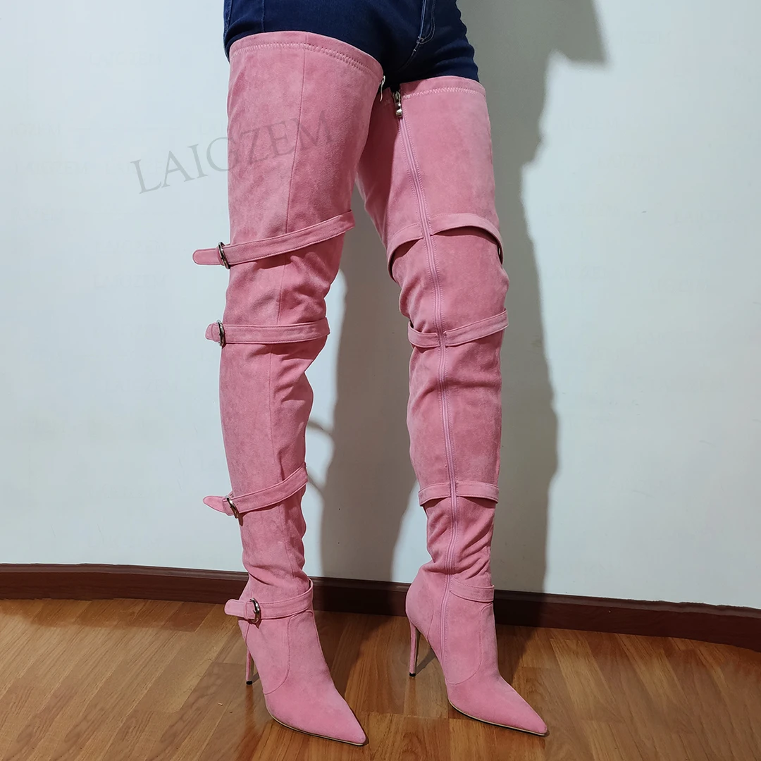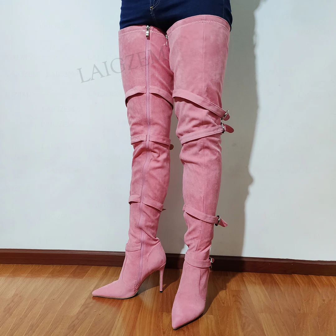 LAIGZEM/женские облегающие высокие сапоги из искусственной замши на молнии; Сапоги на высоком каблуке-шпильке; Сапоги выше колена для вечеринки и выпускного; Женская обувь; Большие размеры 41, 44, 46, 47