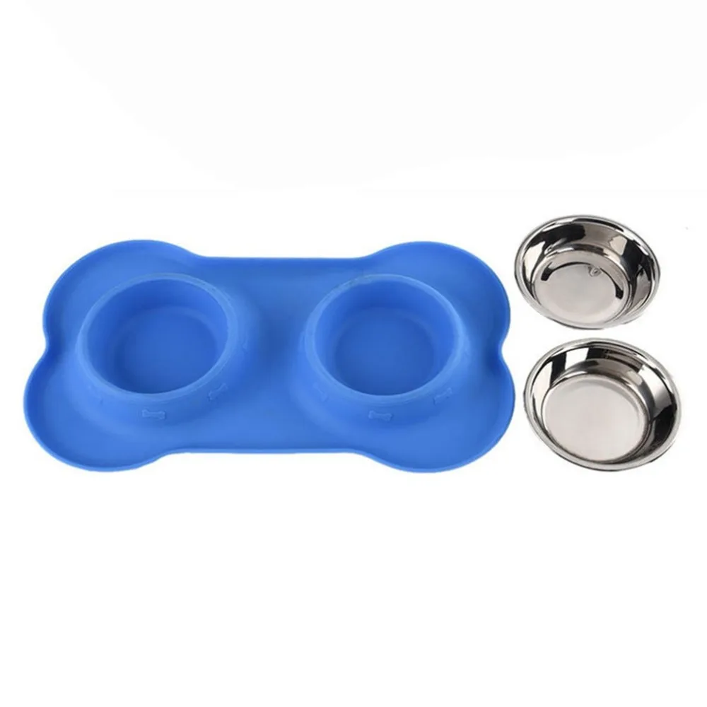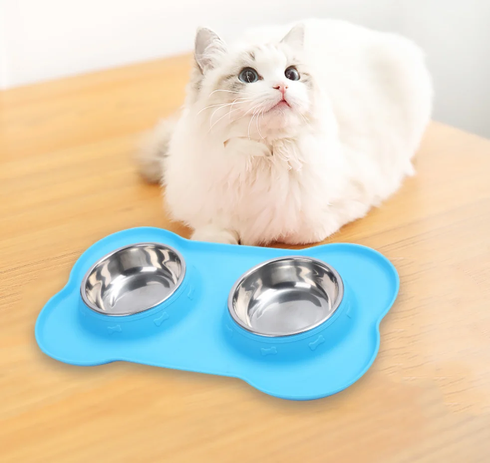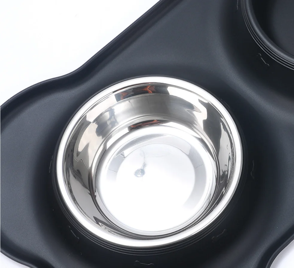 Нескользящая двойная миска для собак с силиконовым ковриком, прочная миска для кормления домашних животных из нержавеющей стали, кормушка для воды и корма