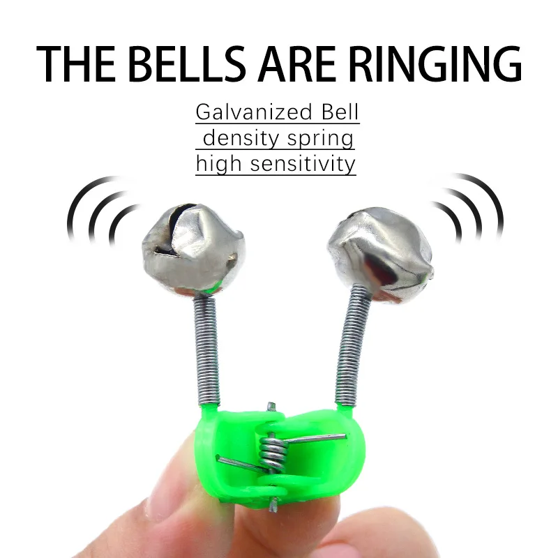 5 шт. сигнализаторы клева, колокольчики для удочки, зажим для удочки, металлический зажим, кольцо, зеленые пластиковые уличные инструменты, рыболовные снасти, аксессуары
