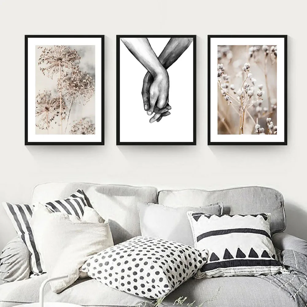 Черно-белая романтическая Картина на холсте рука в руке, любовь, цитаты, настенный художественный постер, печать, модная картина для пар, влюбленных, декор для комнаты