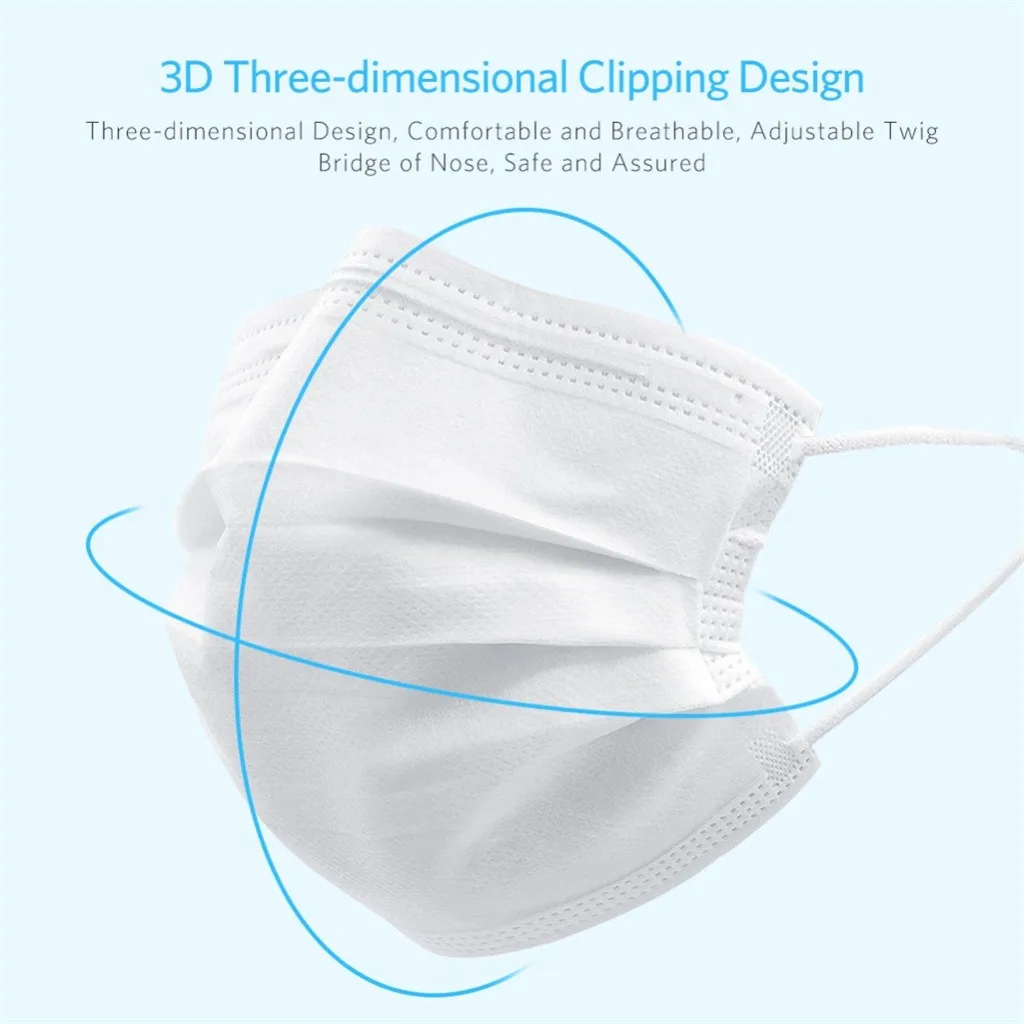 Маска одноразовая промышленная 3ply с петлями для ушей для взрослых, 1020304050100300400500600 шт., черная регулируемая