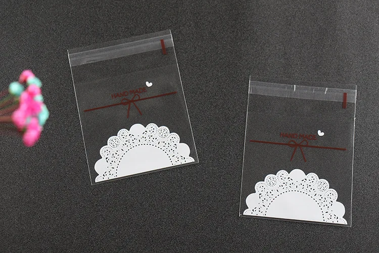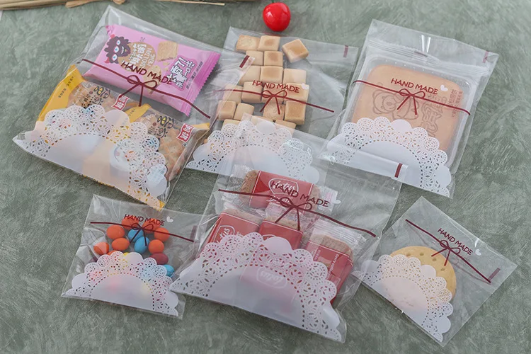100 шт.прозрачный кружевной снек с бантом различных размеров, мешок для печенье с ириской для дня рождения, самоклеящийся герметичный карман