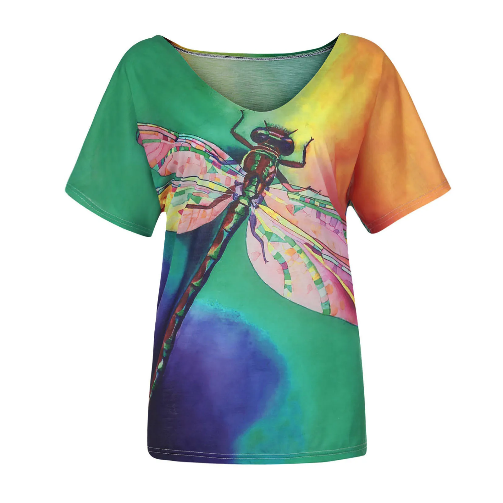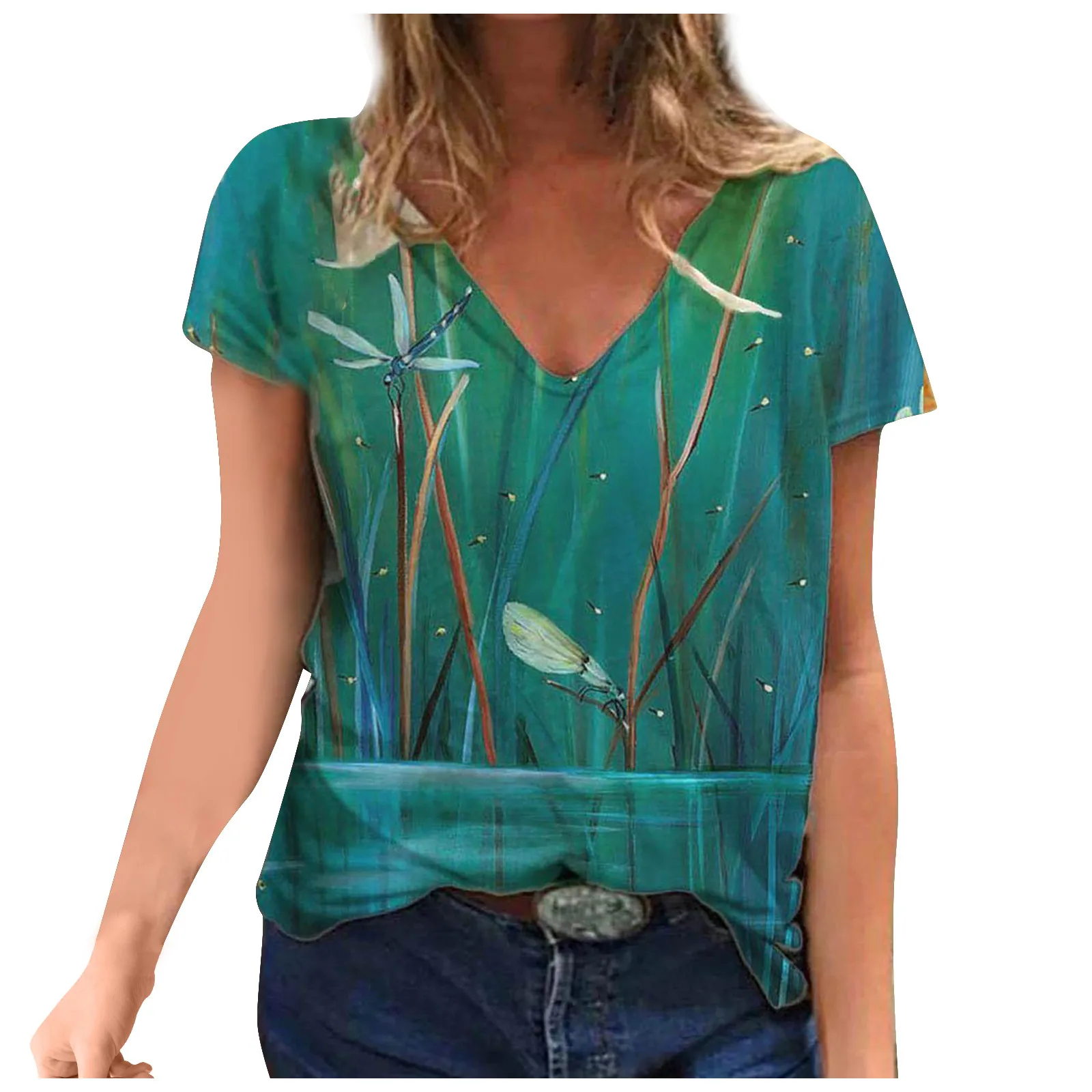 Футболка женская с коротким рукавом и принтом, Свободный дышащий топ с V-образным вырезом, повседневная одежда для упражнений