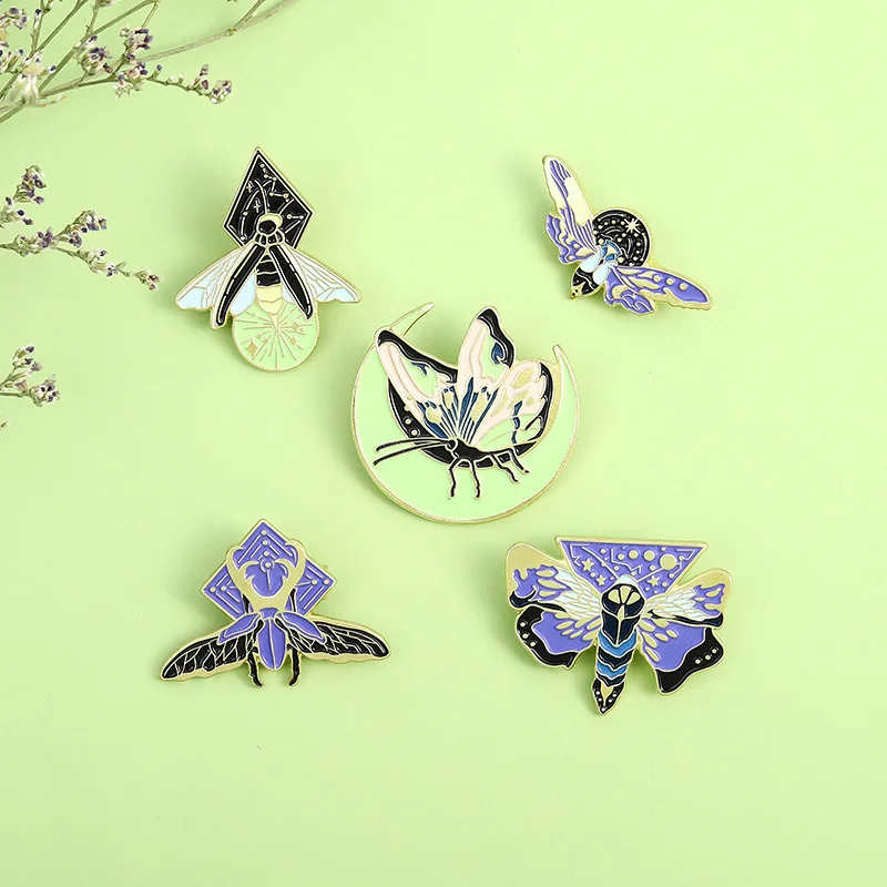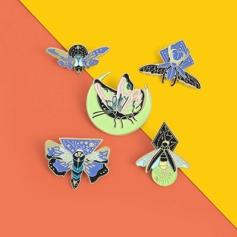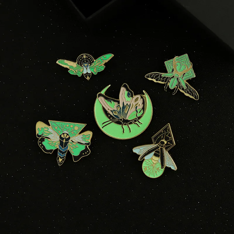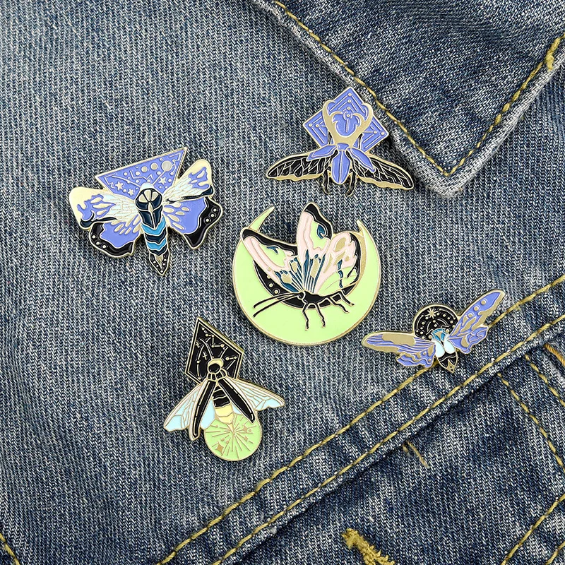 Светящаяся эмалированная булавка, 5 стилей, Бабочка, луна, пользовательский мешочек для брошек, мультяшный, значки с животными, ювелирные изделия, подарок для детей, друзей