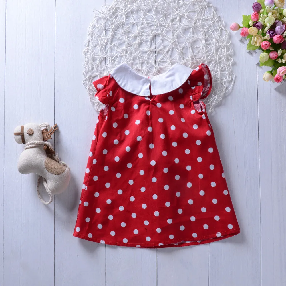 Платье для новорожденных девочек, летнее платье принцессы без рукавов, красное платье в горошек для маленьких девочек, сарафан на день рождения