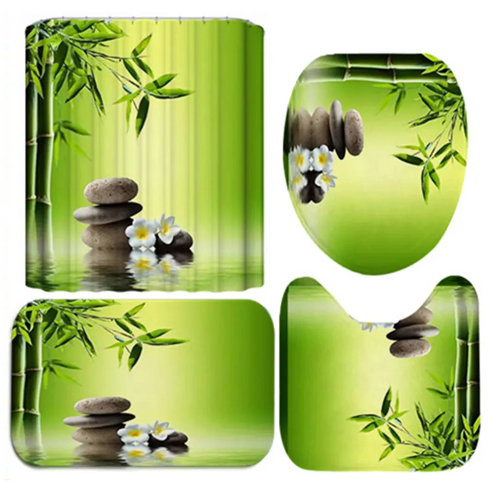Зеленая бамбуковая занавеска для душа из полиэстера, нескользящий Коврик для ванны, крышка для унитаза, накидки, декоративный набор для ванны спа дзен