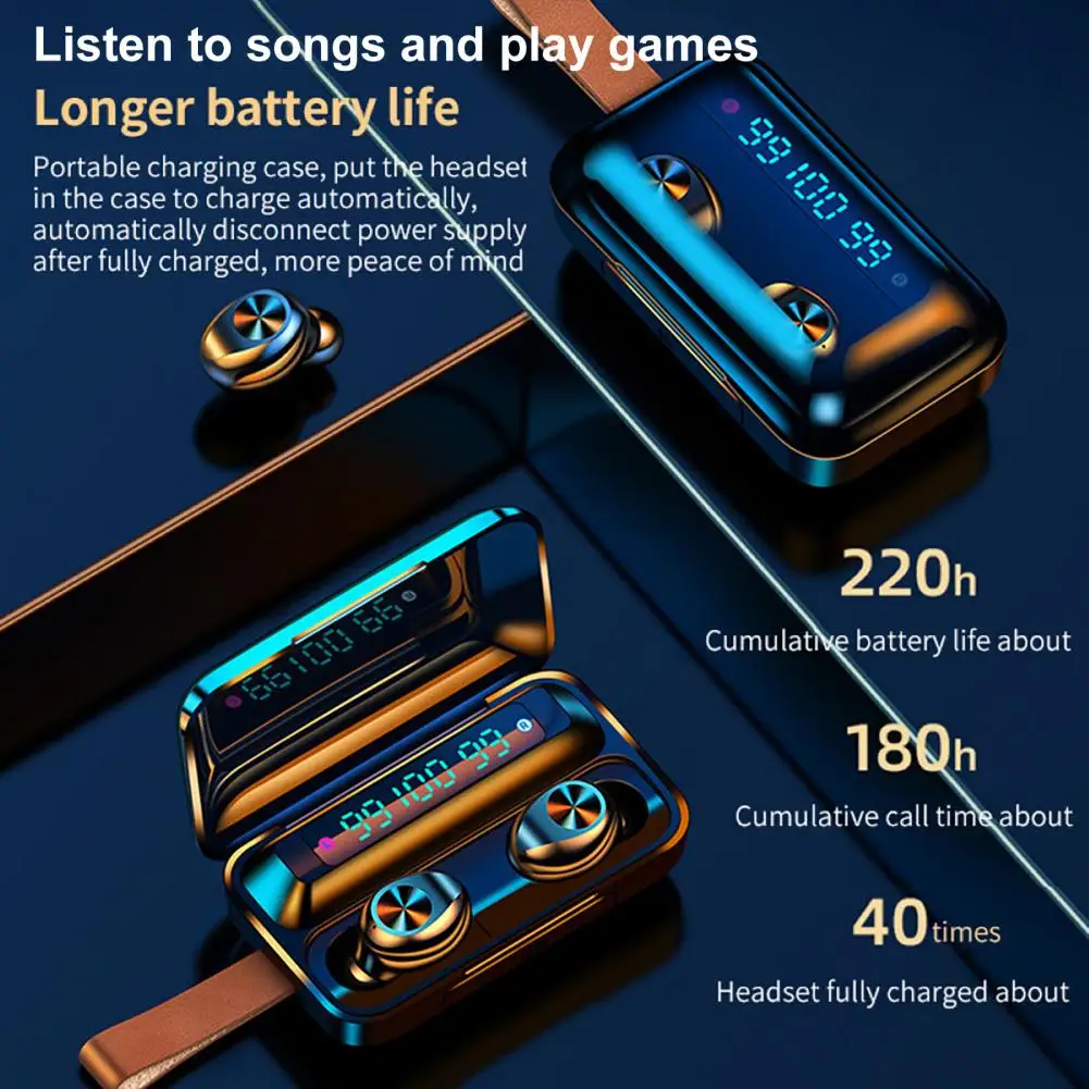 Характеристики:Беспроводные наушники оснащены чипом Bluetooth 5,0 с низким энергопотреблением и быстрым и стабильным соединением.Имеет Уровень водонепроницаемости IPX7.Эргономичный дизайн, удобно носить.Он оснащен аккумулятором большой емкости, который имеет длительное время ожидания. Название товара: беспроводные наушникиМатериал: ПКВерсия Bluetooth: 5,0Входное напряжение: 5 ВЧастотный диапазон: 100 Гц-8 кГцОтношение сигнал-шум: ② 70 дБУровень водонепроницаемости: IPX7Емкость аккумулятора наушников: 50 мАч (входит в комплект)Емкость аккумулятора зарядного устройства: 2000 мАч (входит в комплект)Время ожидания: около 4 часовВремя разговора: около 4 часовДальность передачи: 10 мОсобенности: беспроводной, водонепроницаемый, удобный в носкеРазмер зарядного устройства: 12 см x 6 см x 2,5 см/4,72 дюйма x 2,36 дюйма x 0,79 дюйма (прибл.) Примечания:Из-за разницы в освещении и настройках экрана цвет изделия может немного отличаться от изображения.Возможны незначительные различия в размерах из-за различий в измерениях вручную. Посылка входит:1 пара беспроводных наушников1 х зарядная коробка1 х зарядный кабель4 наушника1 х Руководство пользователя