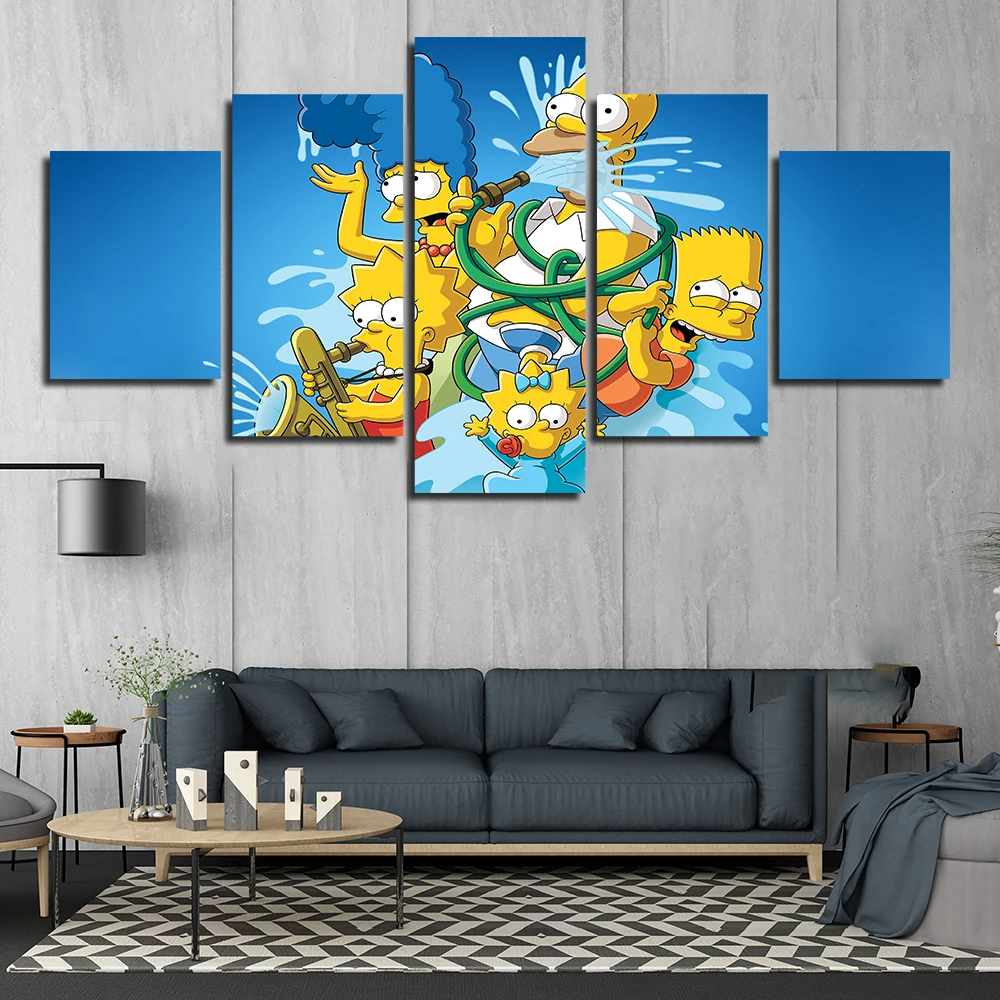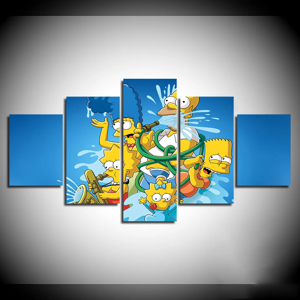 Современные модульные картины на стену, 5 шт., холст, художественные HD плакаты и принты Симпсонов, Аниме Картина, рамка, украшение для детской комнаты