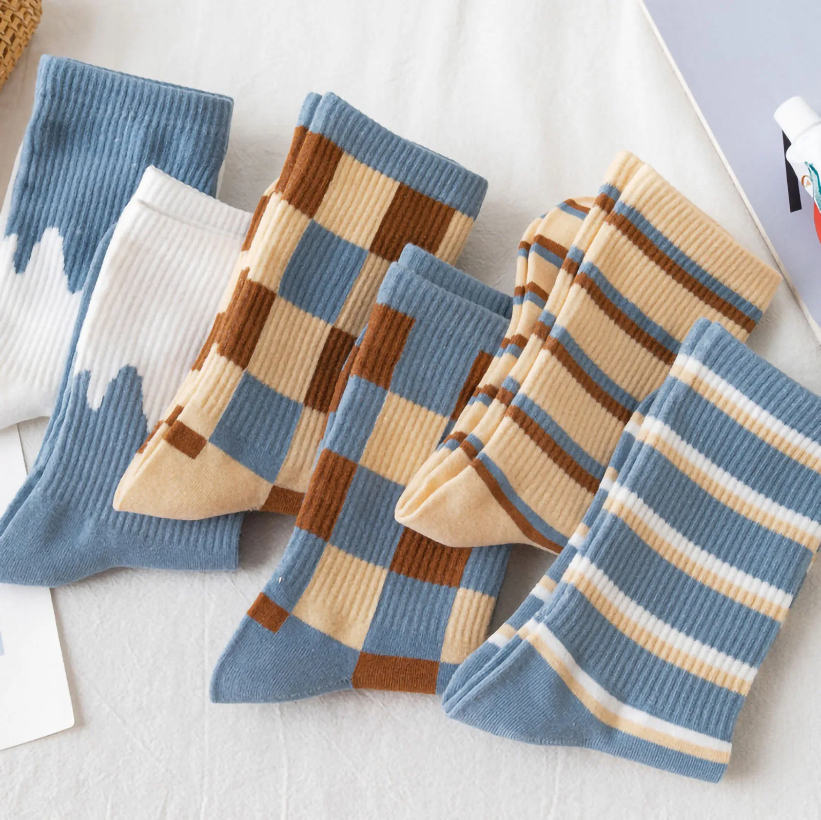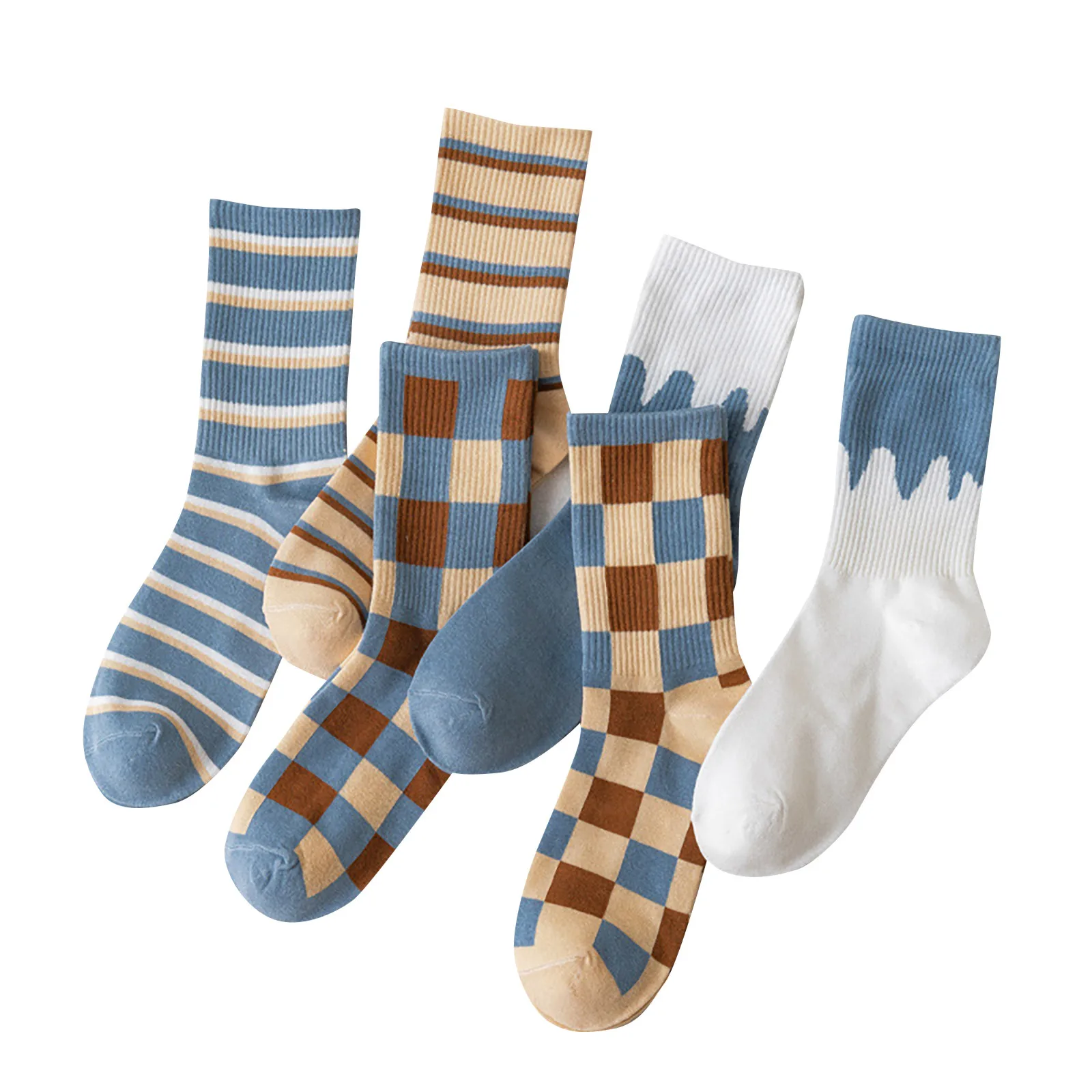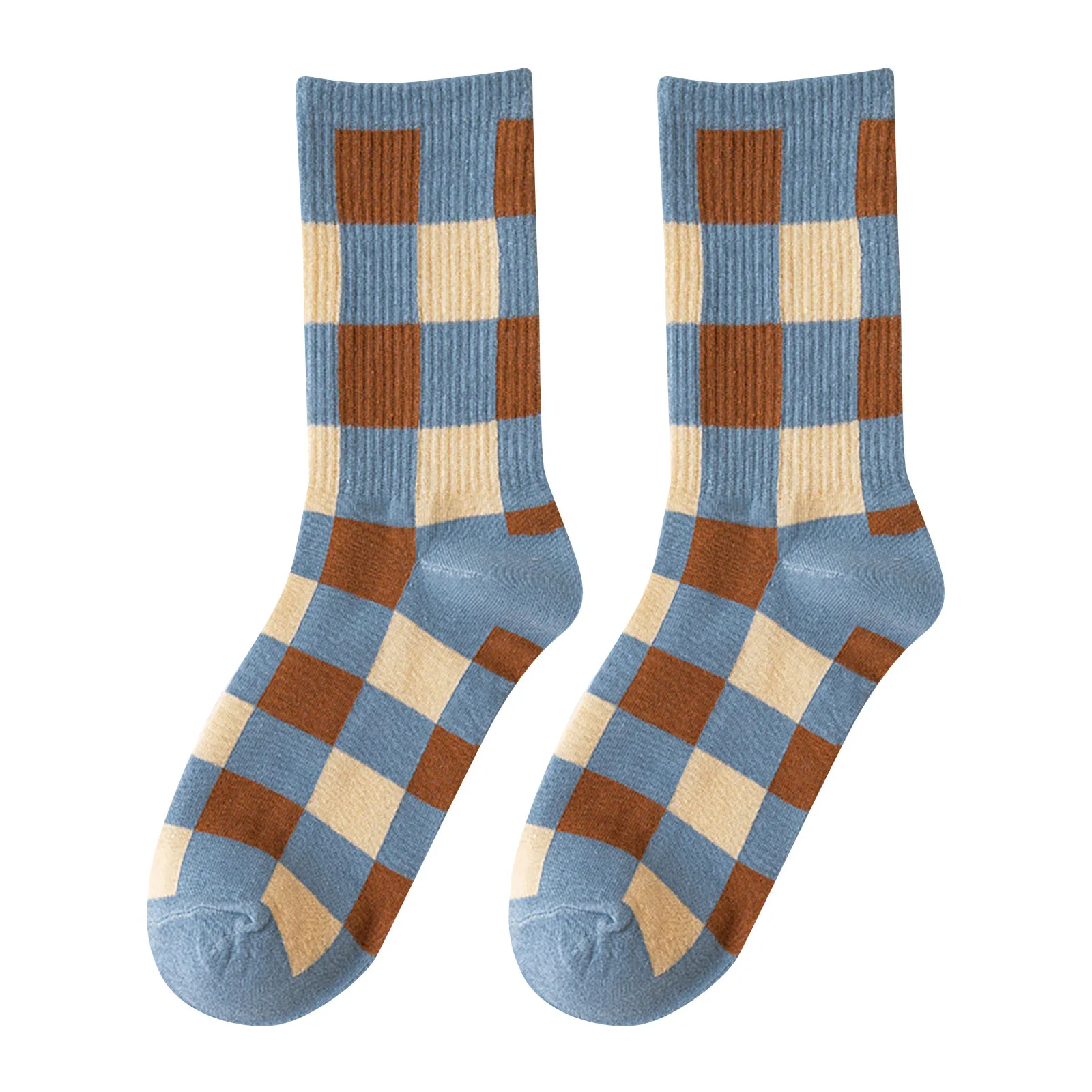 Женские осенние и зимние полосатые синие спортивные носки в клетку