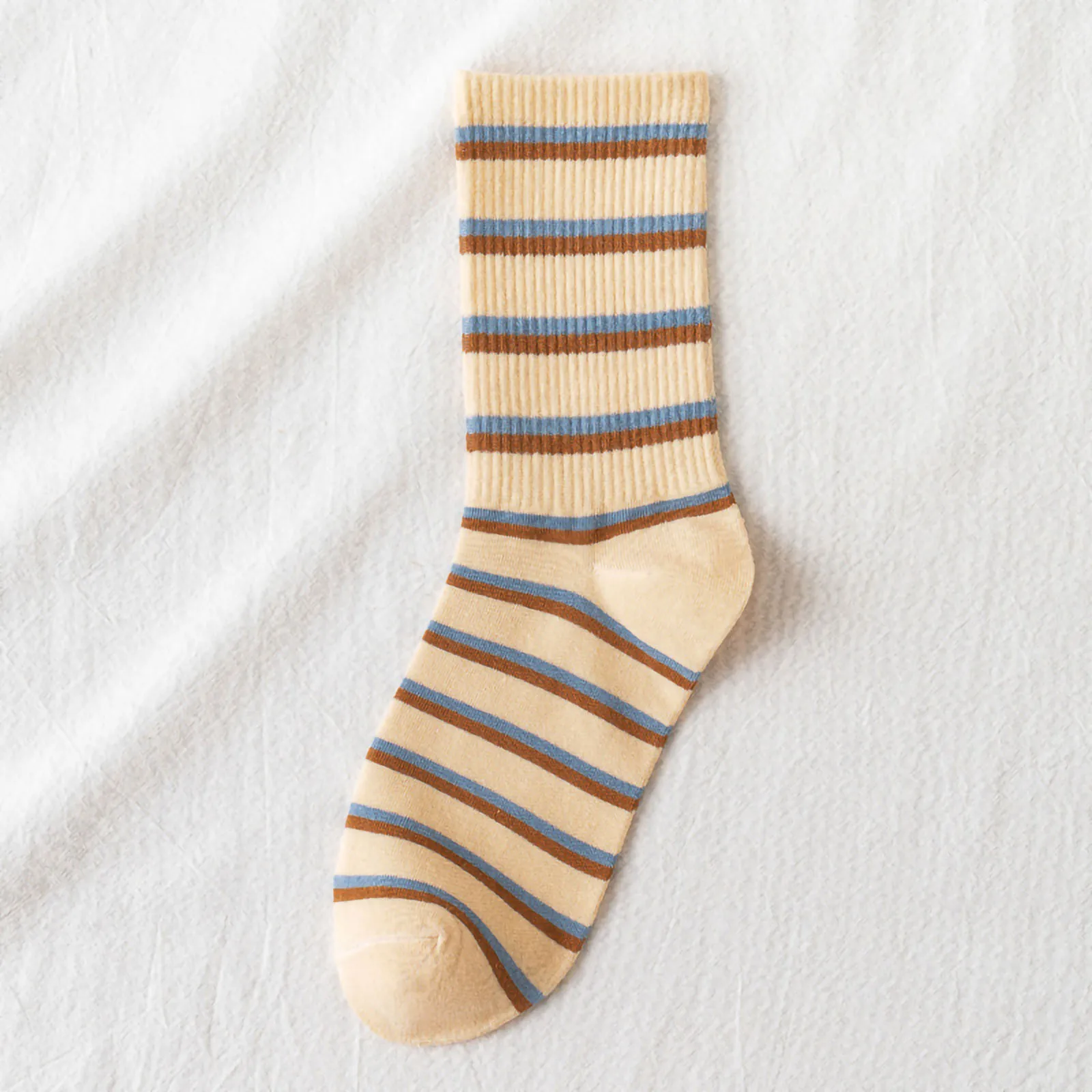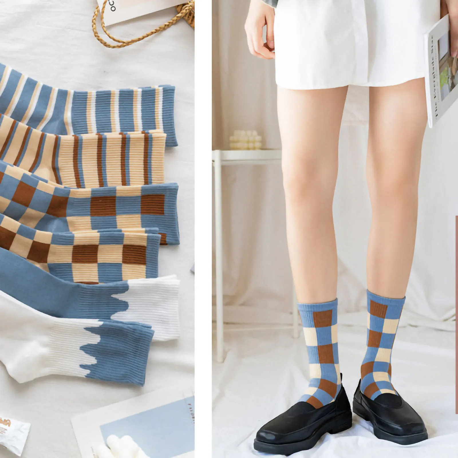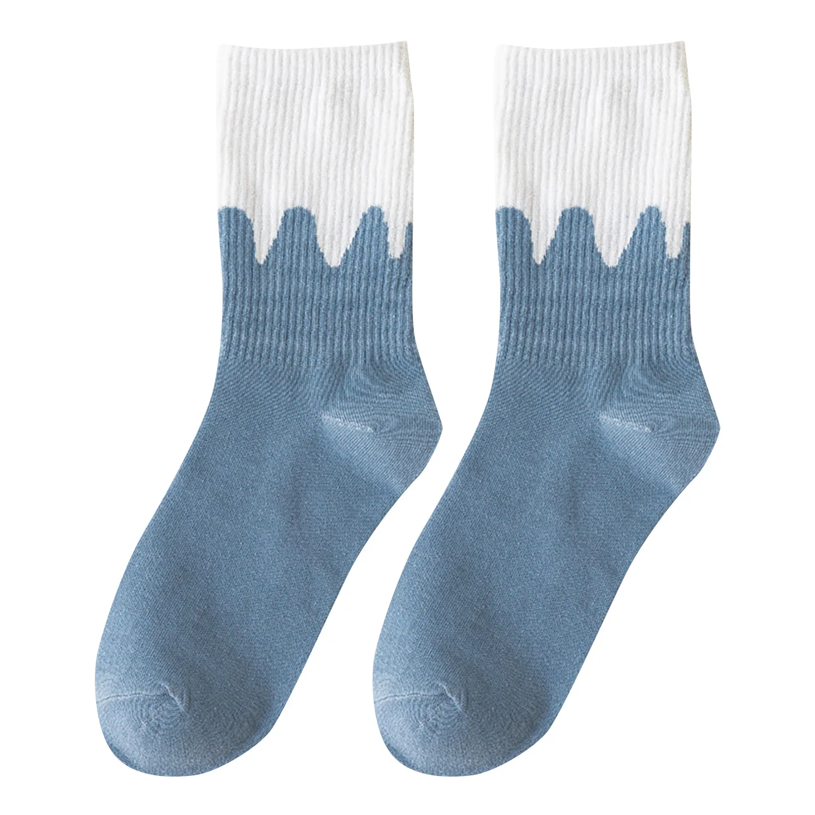 Женские осенние и зимние полосатые синие спортивные носки в клетку