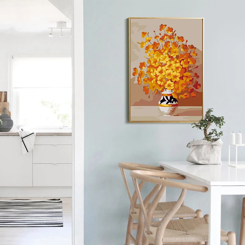 Подсолнечника DIY картина маслом по номерам цветы в вазе Раскраска по номерам на холсте цифровой живописи домашний декор 60x75 см рамка