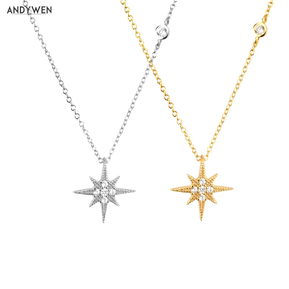 Женская Длинная цепочка ANDYWEN, из серебра 925 пробы с золотистым ...
