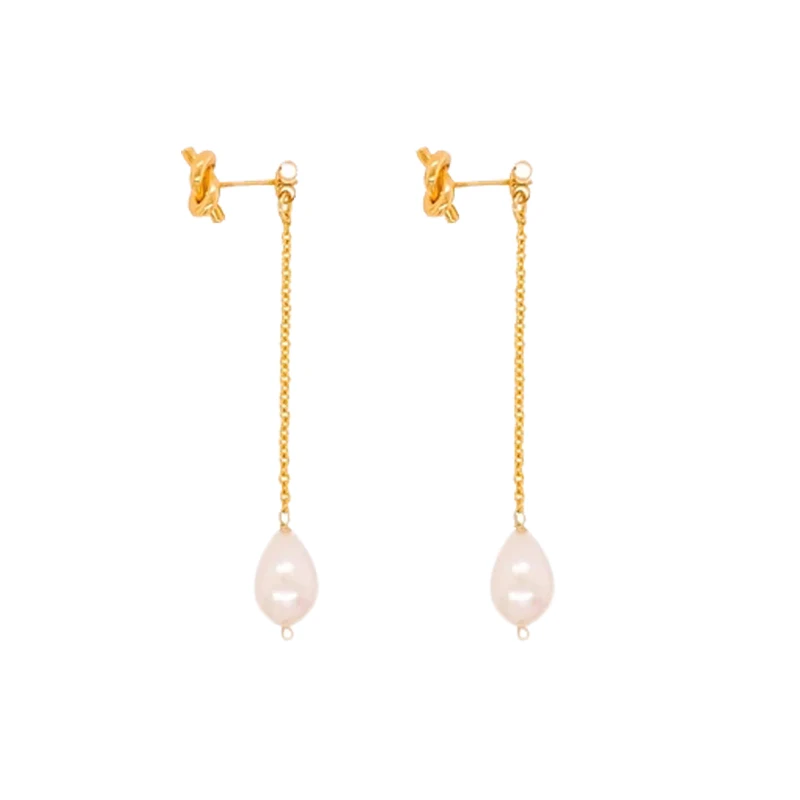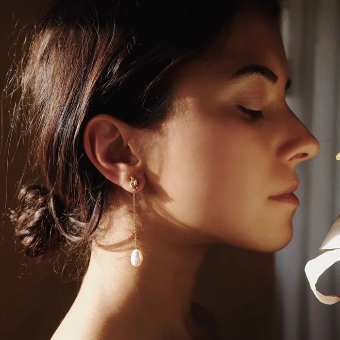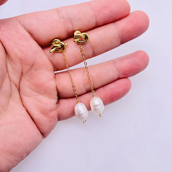 Серьги-подвески женские из латуни с настоящим жемчугом и золотом 18 карат