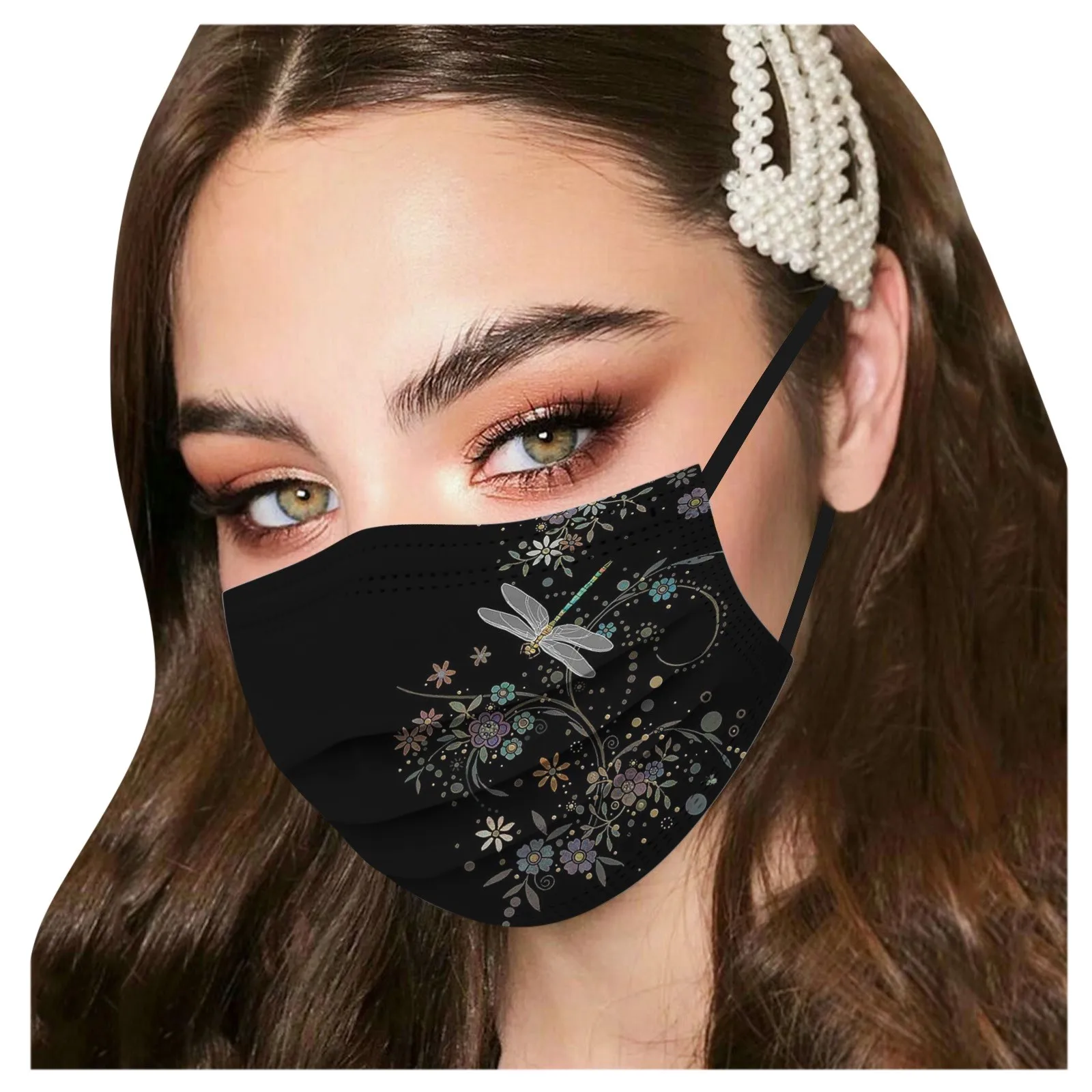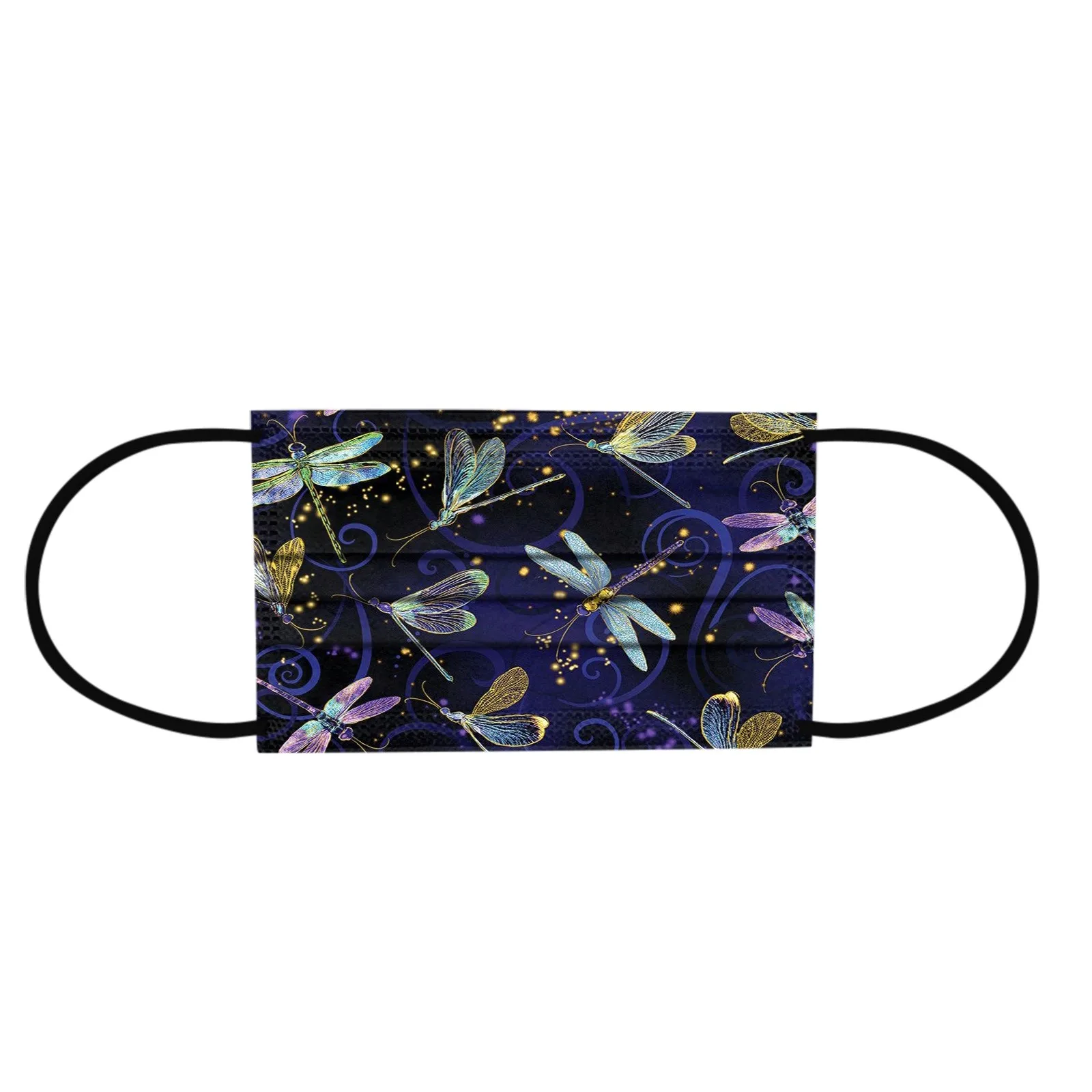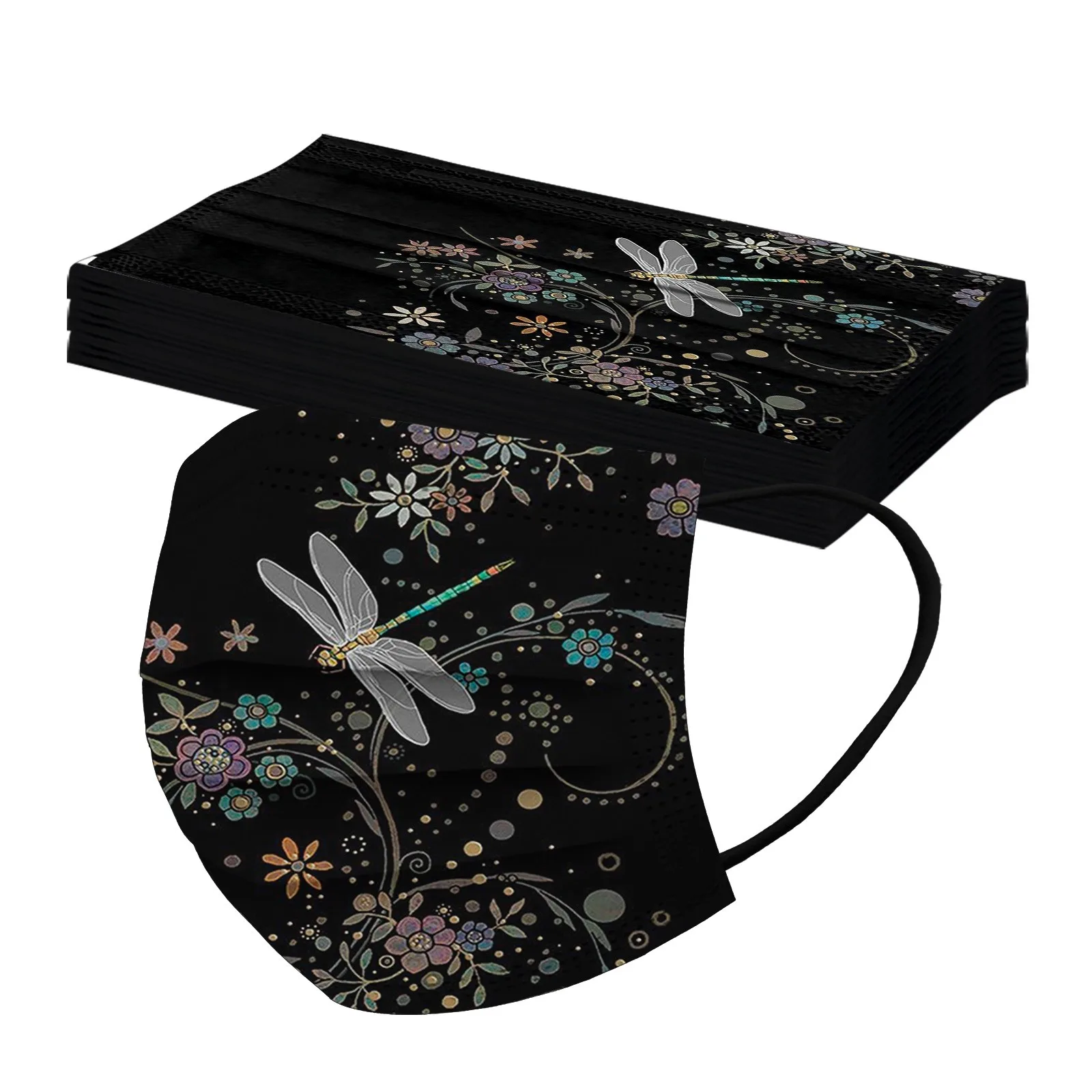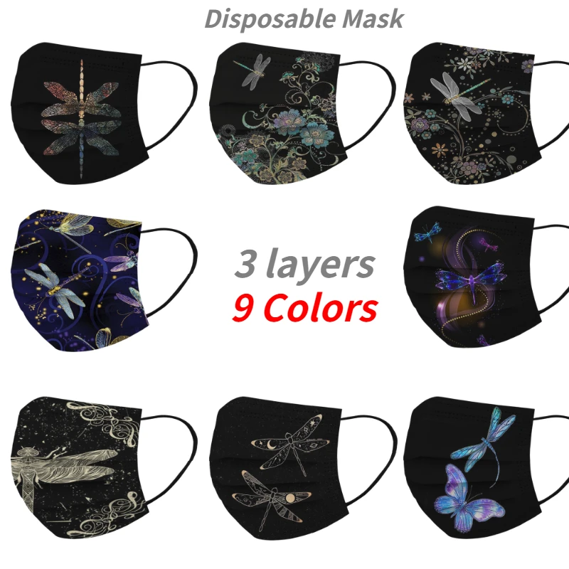 Маска для лица одноразовая, 3 слоя, 10 шт., цветная, с принтом "Стрекоза"