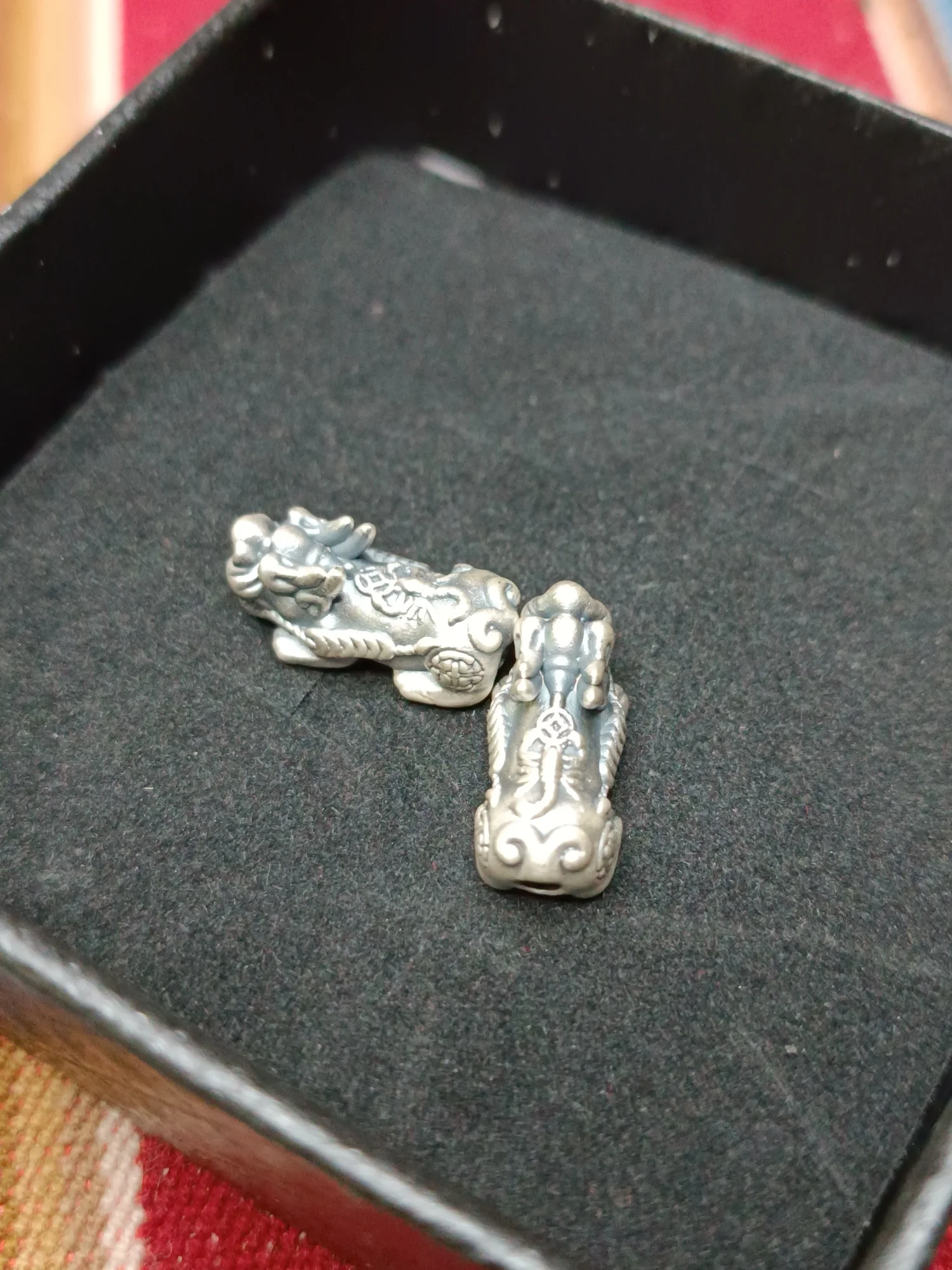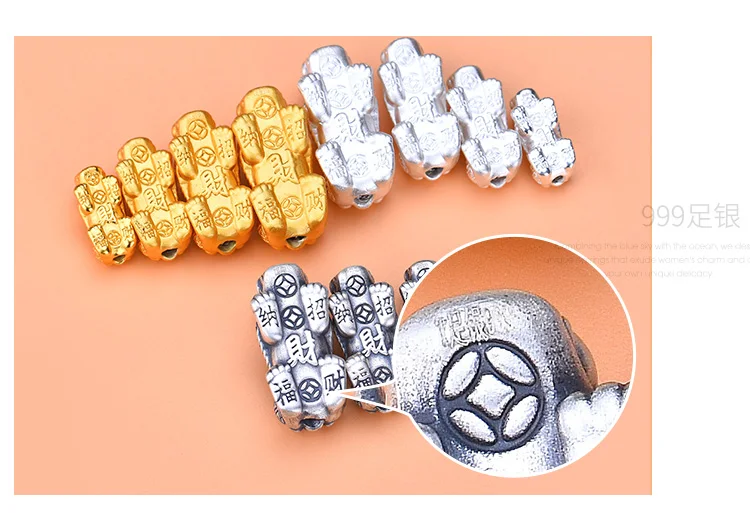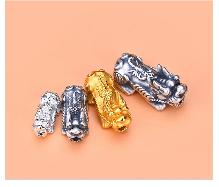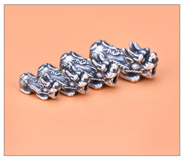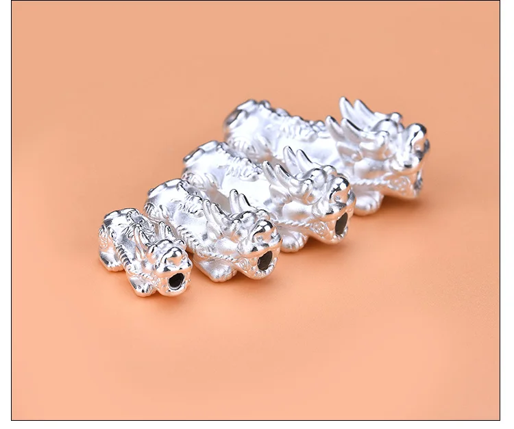 3D 100% 999 серебряный дракон бисера чистого серебра Лаки фэншуй бусины в форме животных богатство Piyao для изготовления украшений своими руками, бусины для браслетов