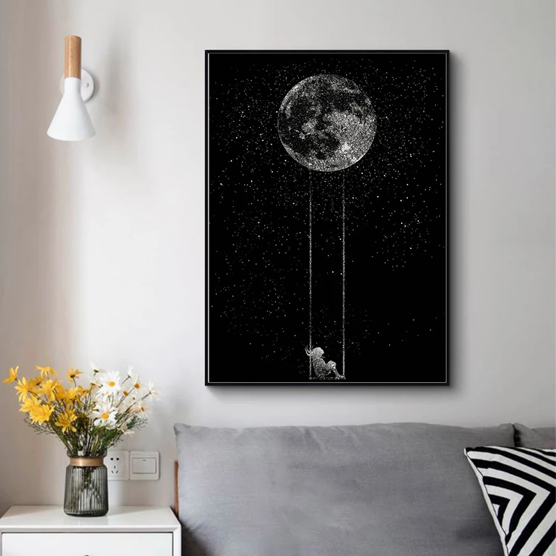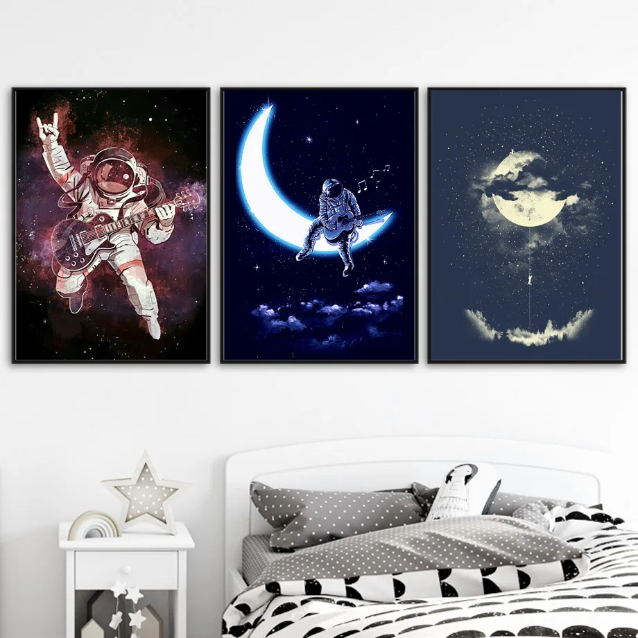 Настенные постеры в скандинавском стиле, настенные картины с изображением астронавта, космоса, Луны, кофейной чашки, домашний декор