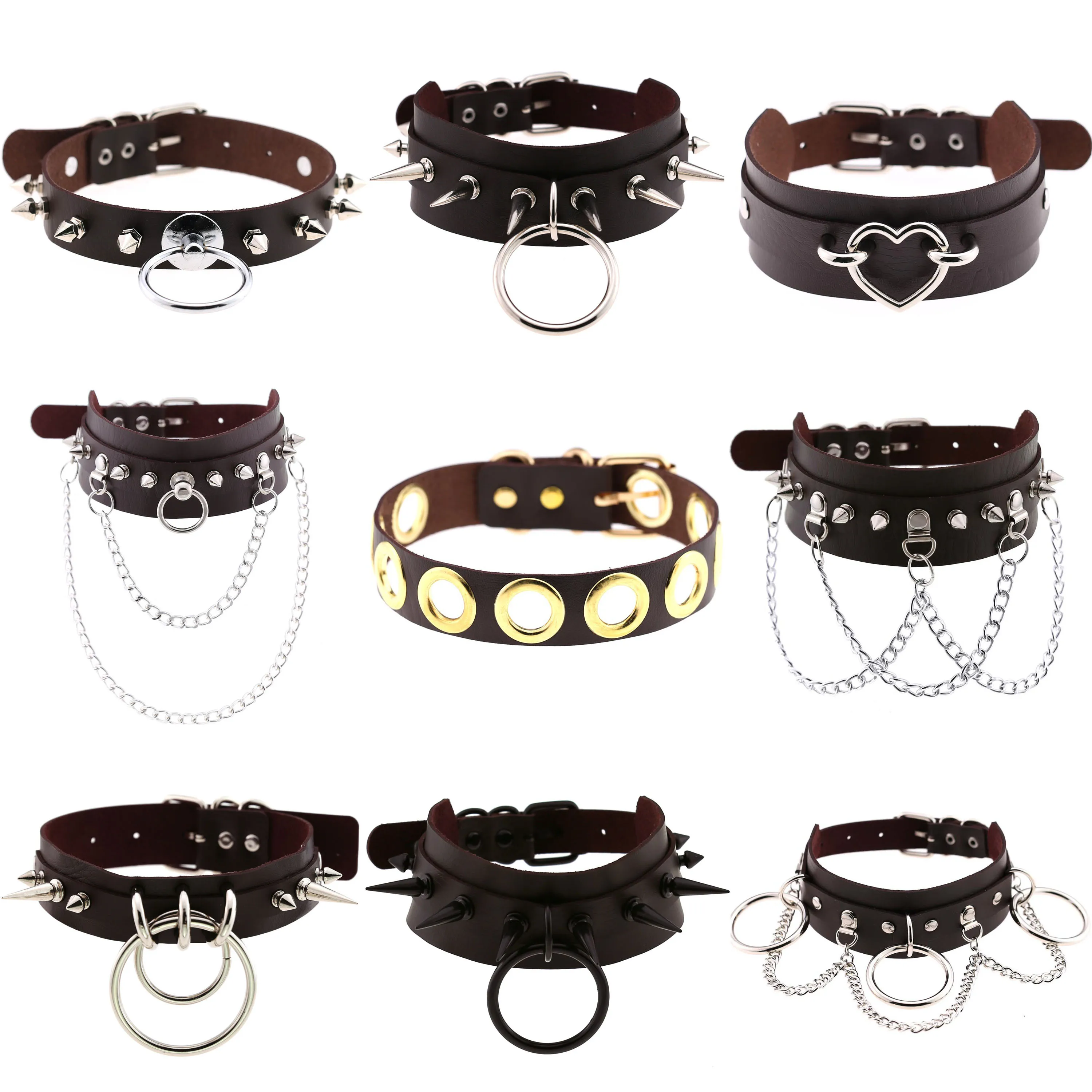 ZIMNO ожерелье в готическом стиле для женщин и мужчин, сексуальный ошейник из искусственной кожи, ограничители, раб, шея, SM-игрушки, цепочки, сдержанные готические ювелирные изделия в стиле панк