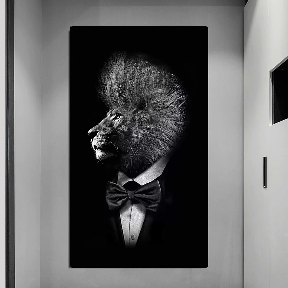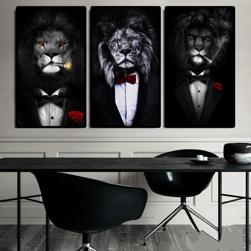 Черный дикий лев в костюме холст художественные плакаты и принты аб...
