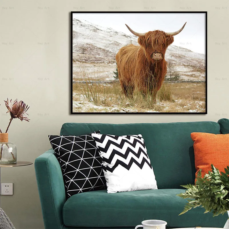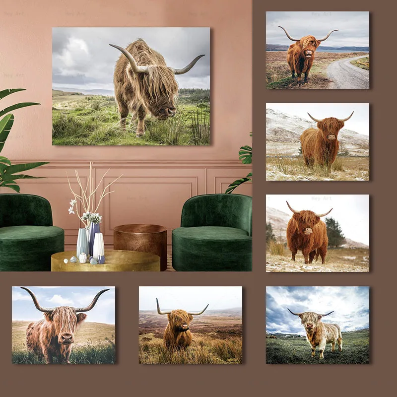 Скандинавские принты Highland корова стены Искусство Холст Картина с рисунком животных постеры и принты скандинавский для гостиной домашний декор