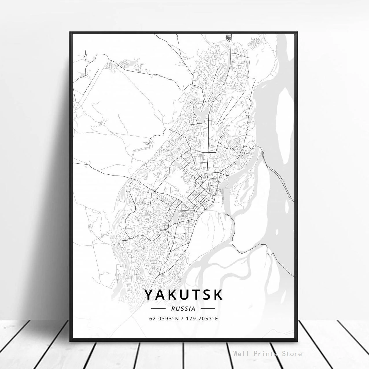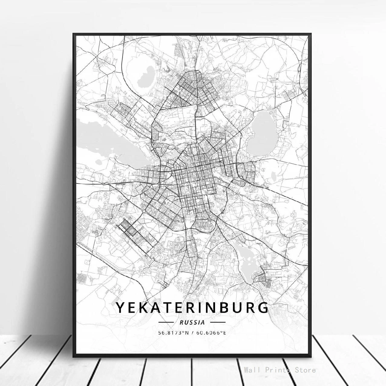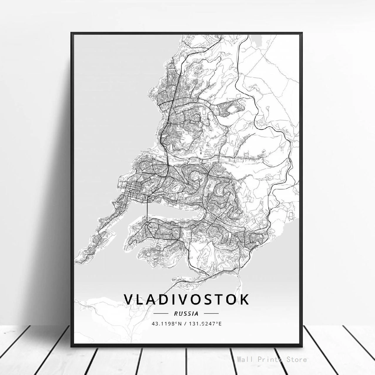 Черно-белая фотография, Владивосток, Волгоград, Екатеринбург, Якутск, Воронеж, Россия, холст, художественная карта, постер, картина