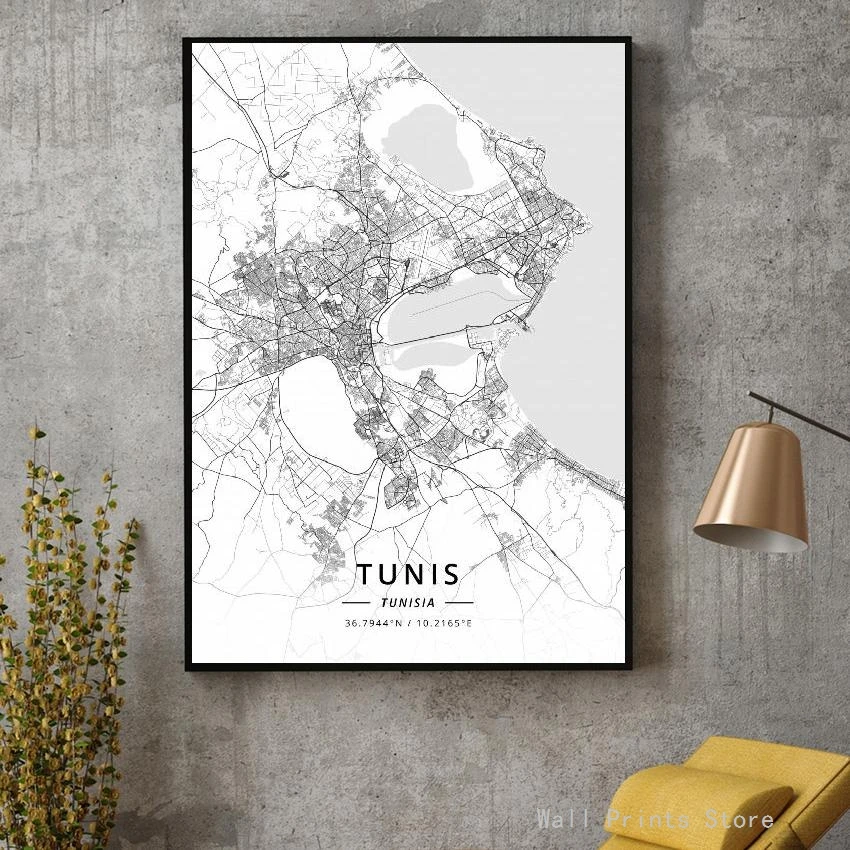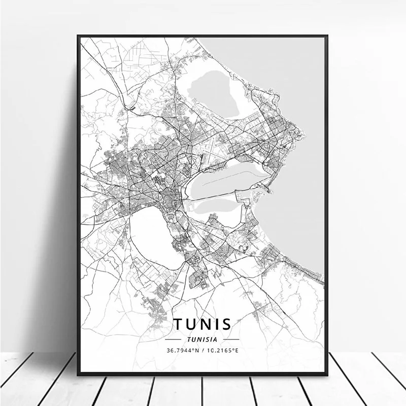 Черно-белый фотографический плакат с длинной долготы Туниса, Художественная Картина на холсте для украшения дома и офиса