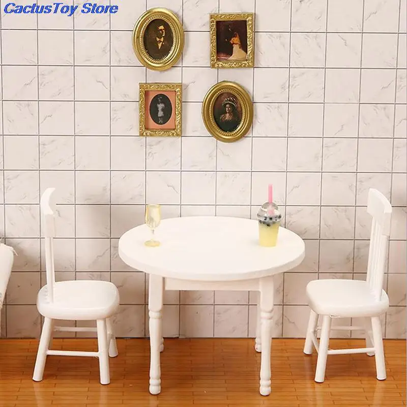 1:12 миниатюрная мебель для кукольного домика, деревянный белый обеденный стол, стул, набор моделей, мебель для кукольного домика, поппеньюар Meubels