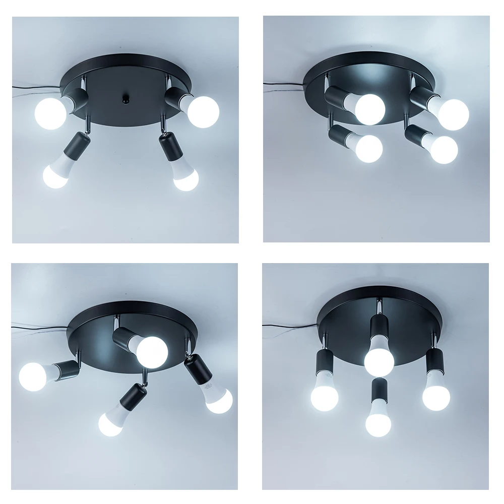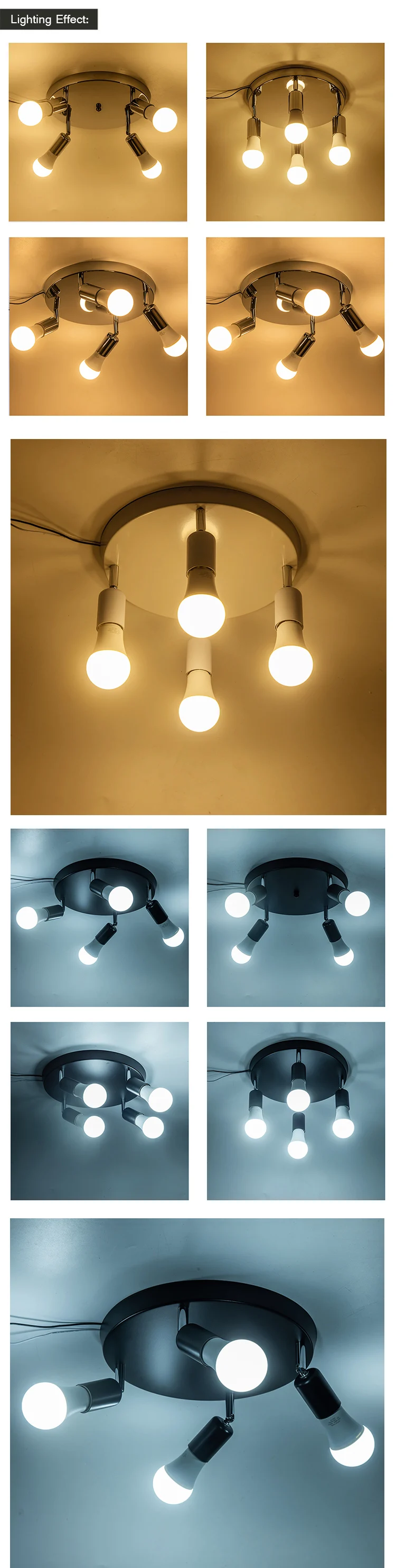 Потолосветильник па, светодиодная с 4 головками, с серебристым, черным и белым корпусом, E27