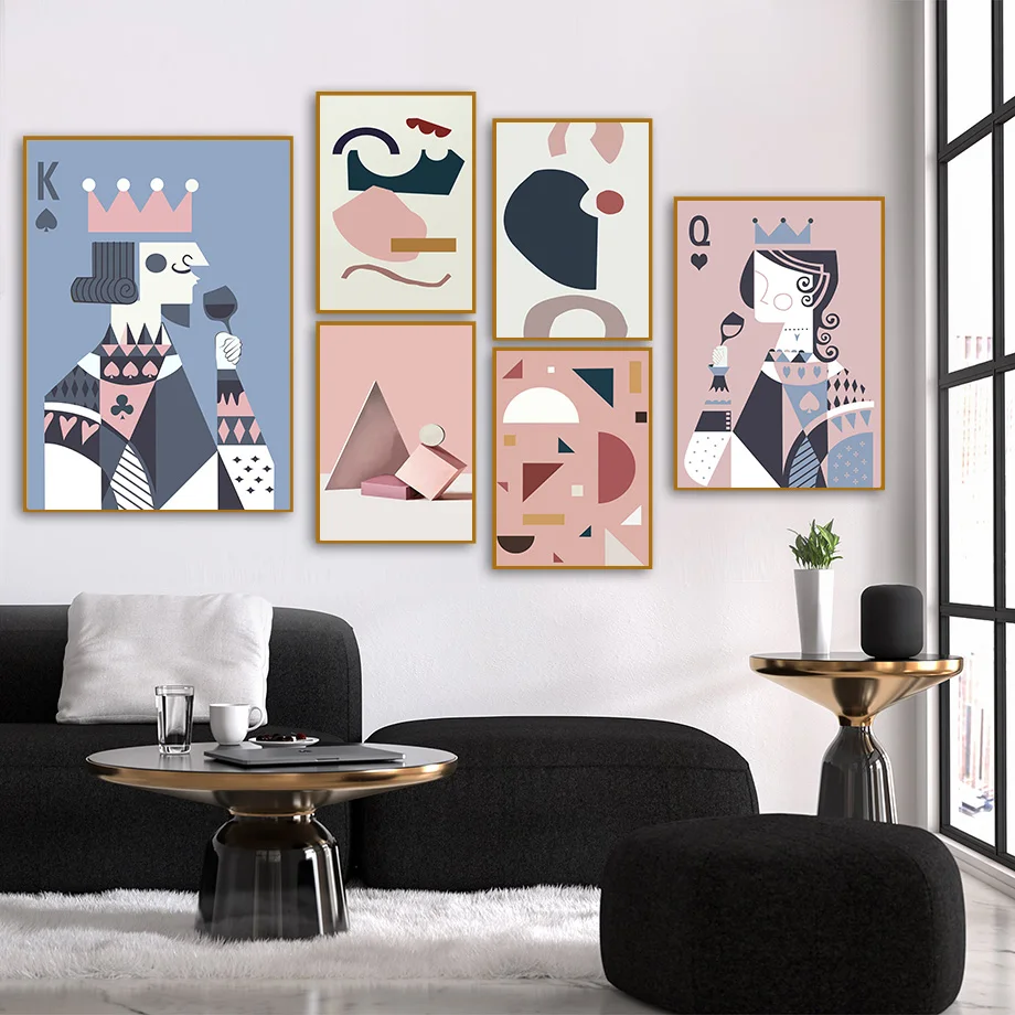 Креативные геометрические абстрактные игральные карты настенная Картина на холсте скандинавские постеры и принты настенные картины для декора гостиной