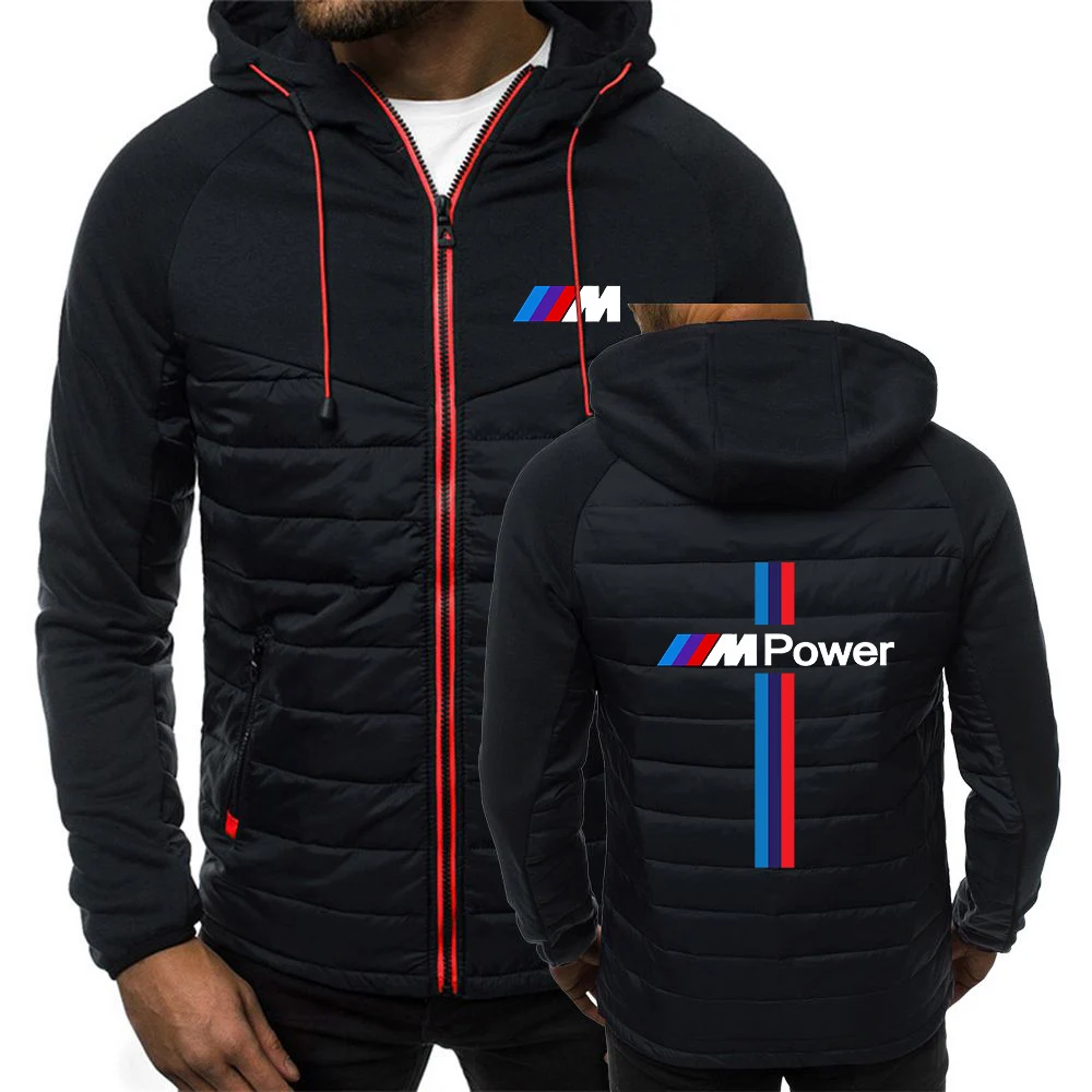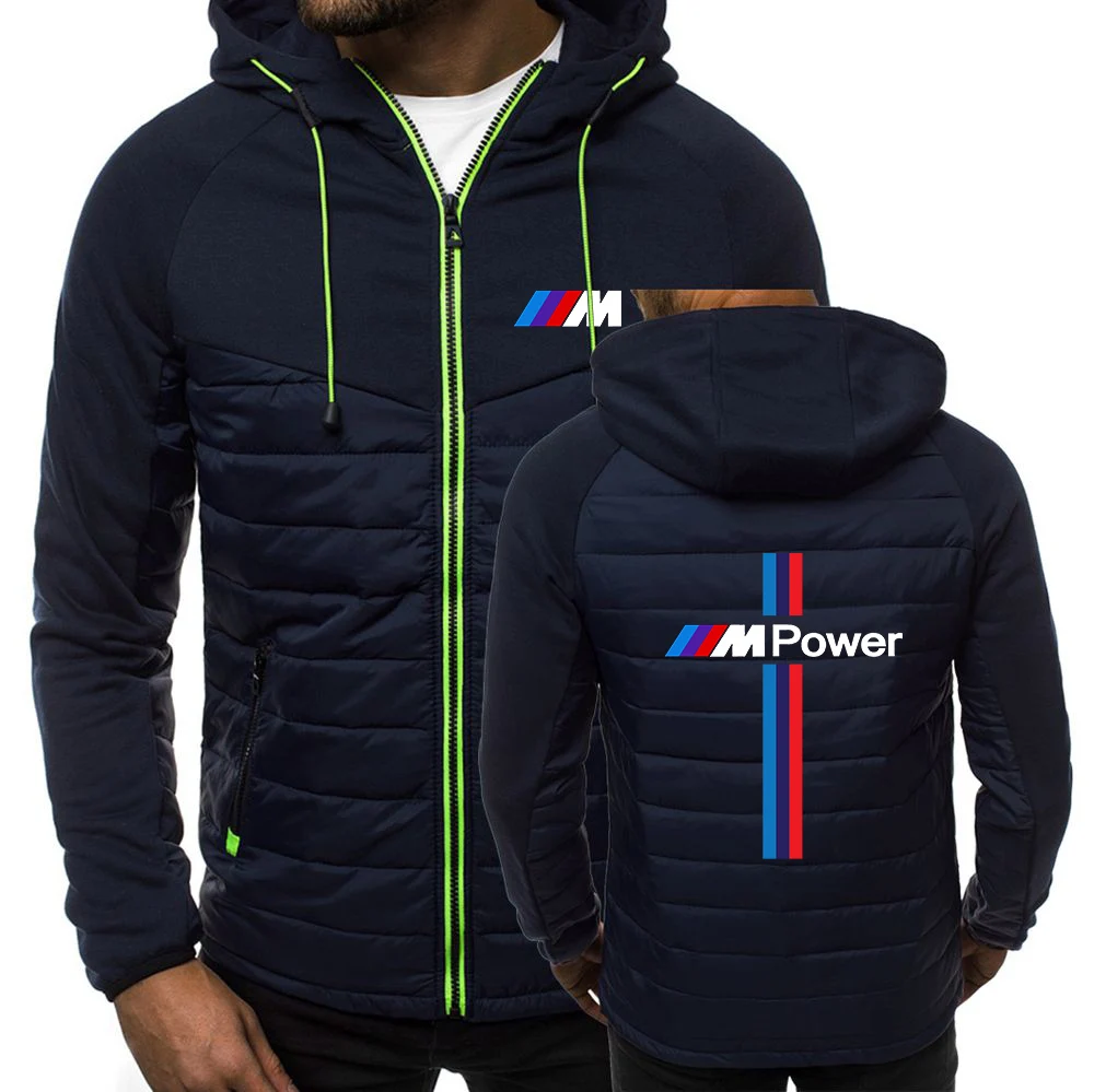 Осенне-зимние толстовки с капюшоном и логотипом автомобиля BMW, куртка с капюшоном, модные теплые стеганые пальто с длинным рукавом с популярным принтом