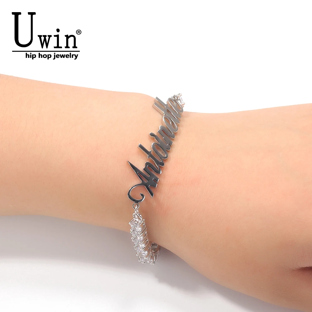 Браслет Uwin с именем на заказ, из нержавеющей стали, с инициалами, с удлинительной цепочкой, модные украшения в стиле хип-хоп