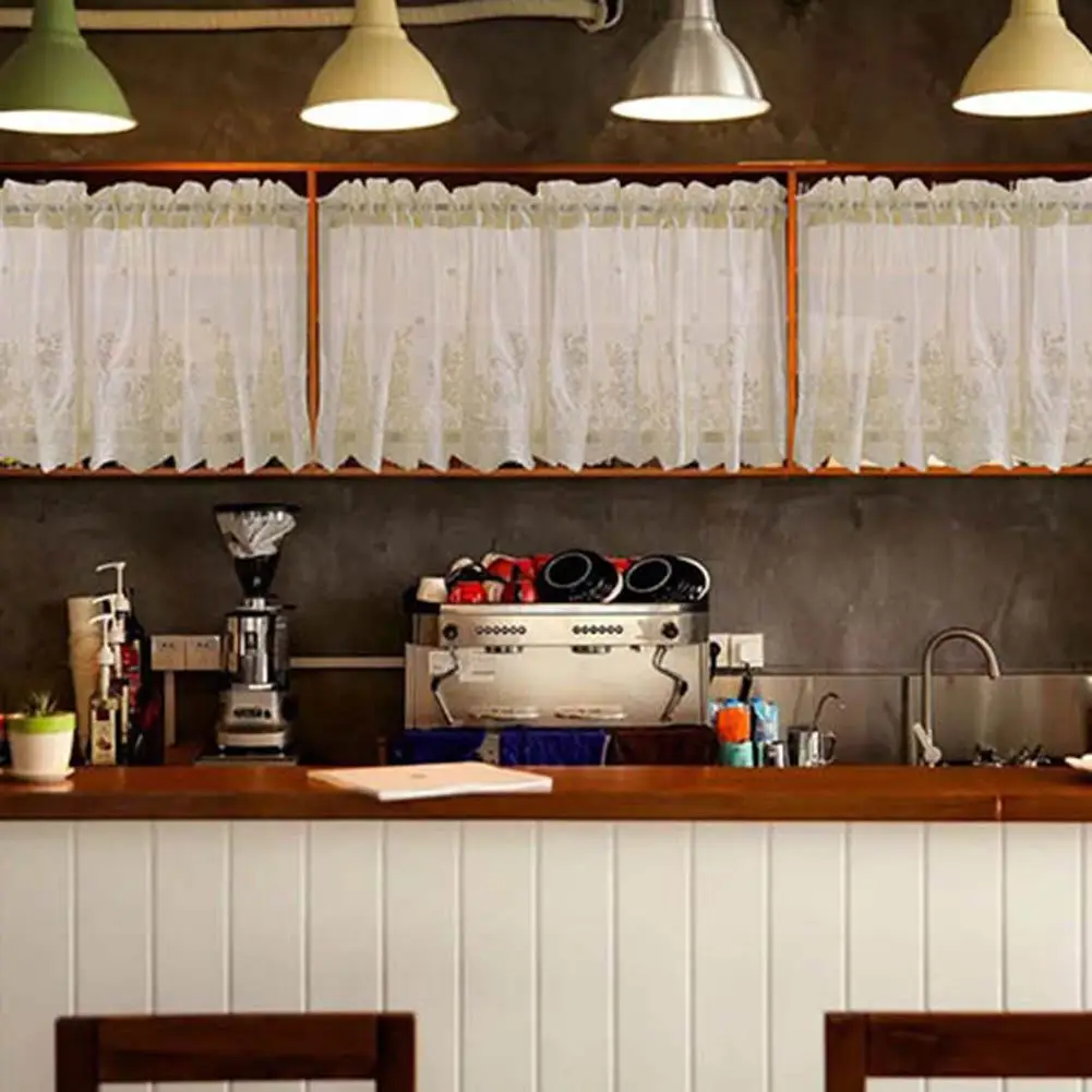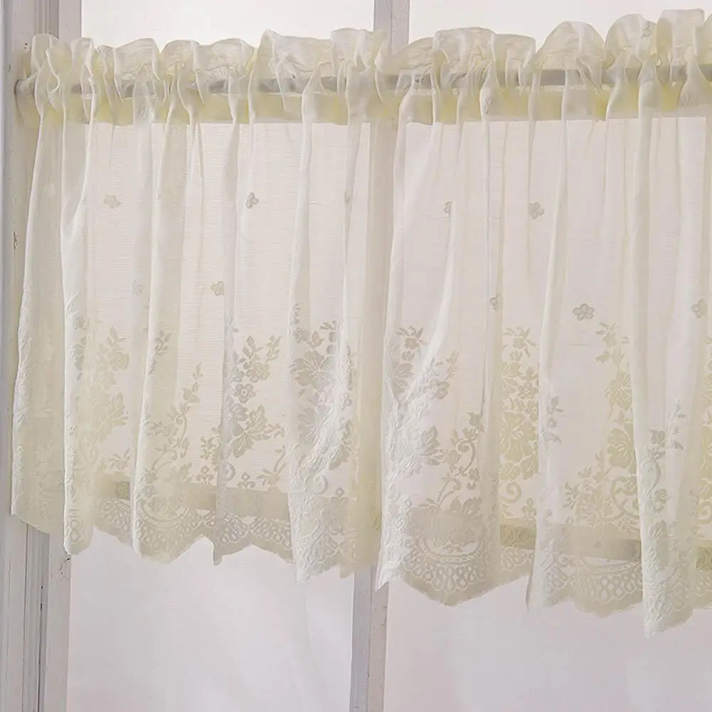 Современная кружевная жаккардовая оконная занавеска С кружевной каймой кофейная Короткая занавеска для кухни двери спальни домашний декор
