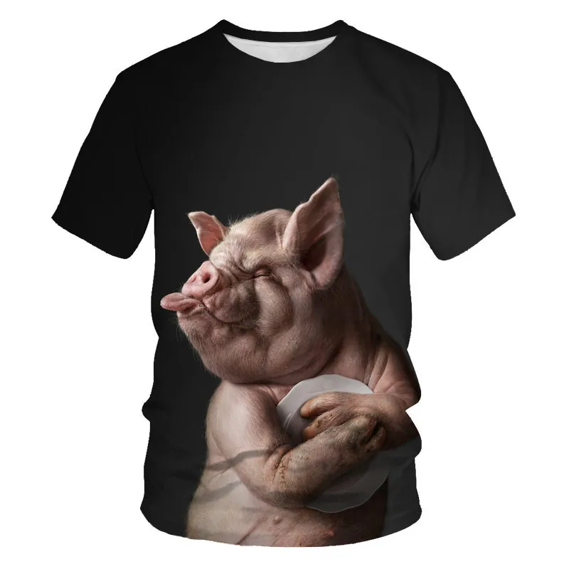 Футболка мужская с 3D принтом поросенка, тенниска с коротким рукаво...