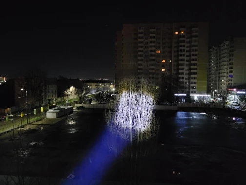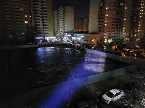 хороший фонарик думал конечно будет дальше светить.но и этот думаю метров 400 осилит.на фото до высотки примерно 150-200 метров достаточно ярко освещает.единственное плохо что нельзя выключить быстро нажав на кнопку только удерживанием.а нажатие переключает режимы