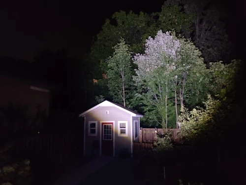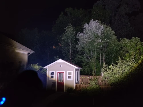 Ребята не знаю с чего начать. Это не фонарик-это прожектор. Посмотрите, на 1 фото (я взяла за ориентир щётку на столбе) я светила обычным карманным фонариком, а на второй этим. ЭТО ВОСТОРГ!!!. На третьей в другом режиме я осветила дерево которое находится на расстоянии 500 МЕТРОВ. Доставка 1НЕДЕЛЯ.ОЧЕНЬ рекомендую. Спасибо огромное продавцу. В других комментариях говорили про подарочек от продавца. Мне к сожалению не положили.