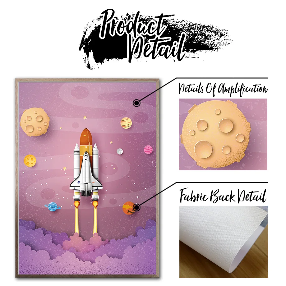 Планет космическая ракета цифры буквы детская стена искусство холст...