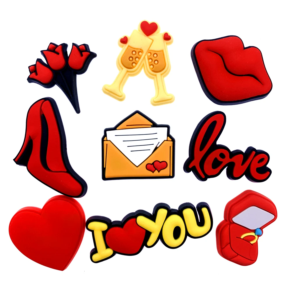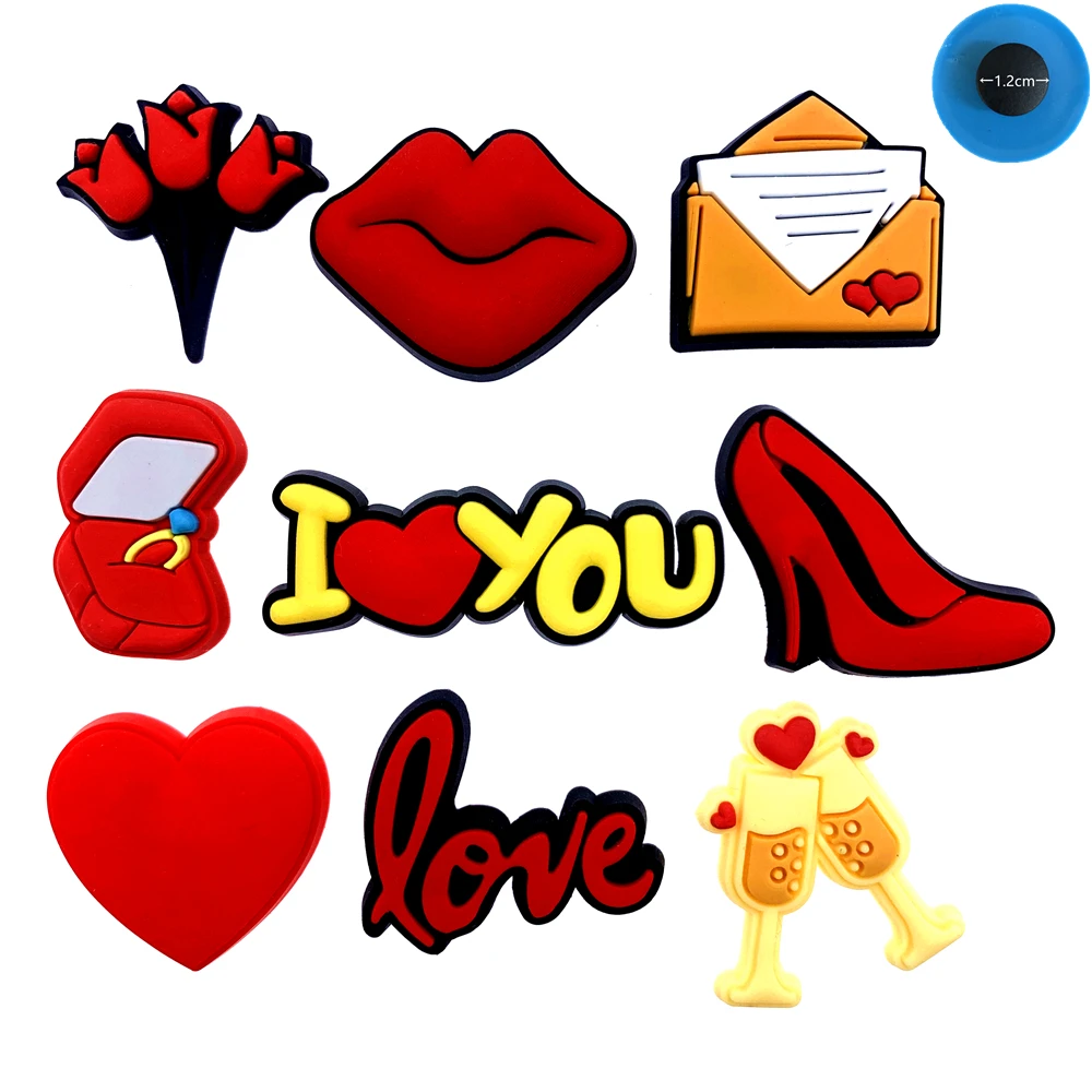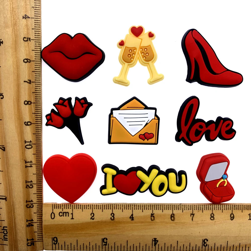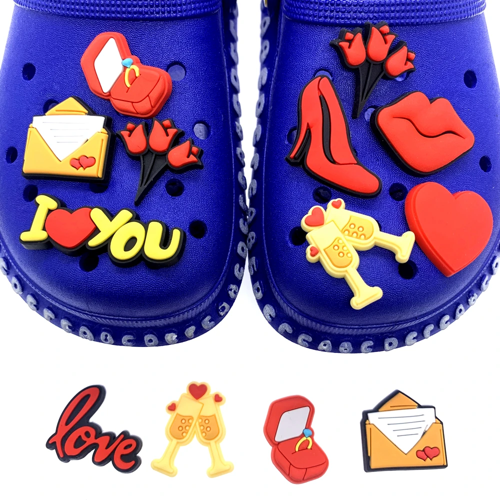 Оптовая продажа, 50 шт., Мультяшные Красные Подвески для обуви, силиконовые аксессуары для тапочек, кольцо для крокодиловой кожи декоративный бокал для вина