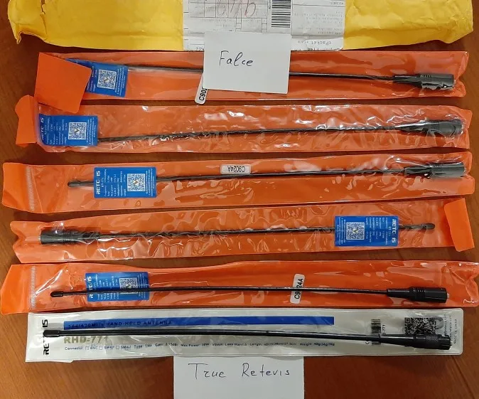 В отличие от предыдущих покупок таких антенн, сегодня я получил подделку. Сравните фото, новые антенны тоньше, изготовлены из других материалов, имеют иные размеры основания. Вместо фирменных чехлов использованы наклейки на чехлы неизвестного производителя.