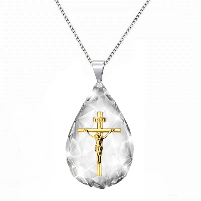 Хрустальная подвеска в форме капли, ожерелье с крестом Иисуса, пода...