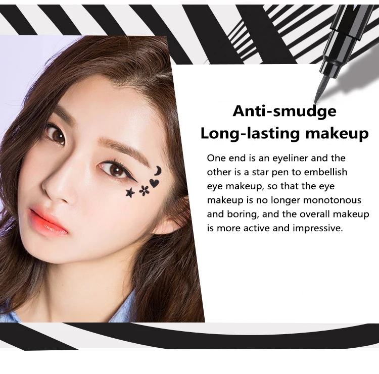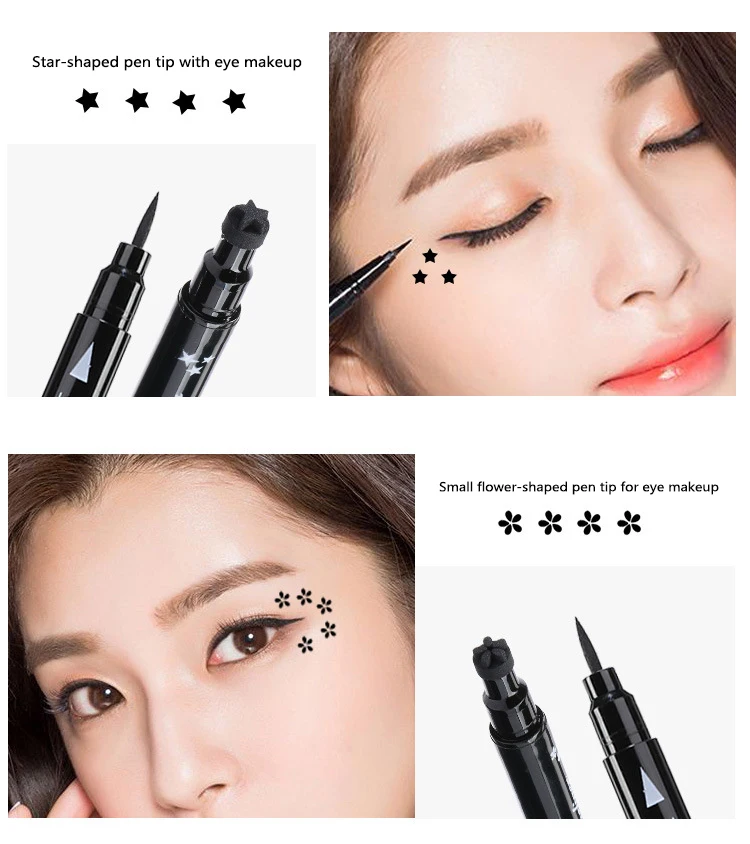 1 шт двойной головкой штамп Черная Подводка для глаз луна звезды сердце цветы Водонепроницаемый жидкая подводка для глаз, карандаш для глаз Макияж инструмент TSLM1