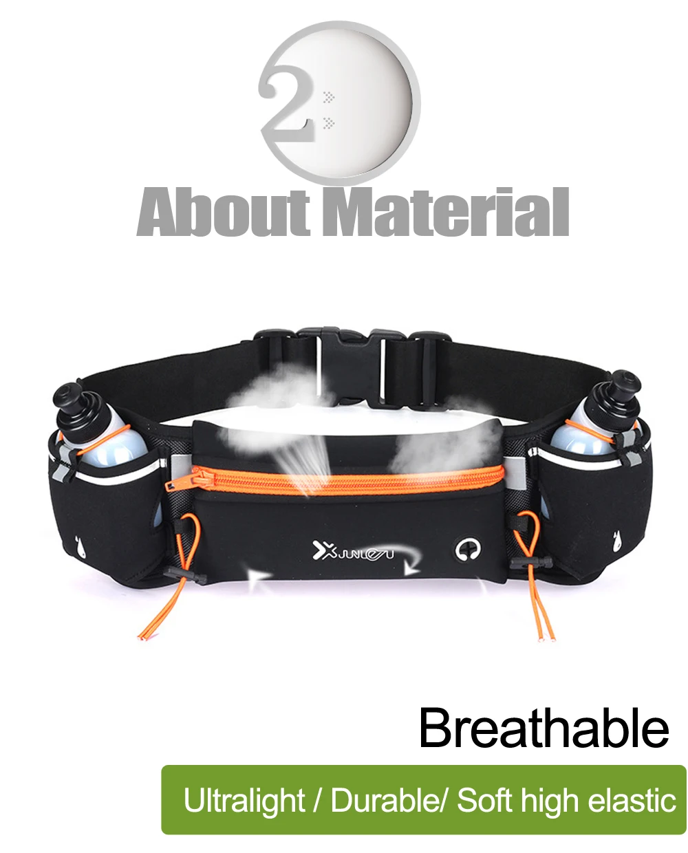 2 BPA бесплатно 280 мл бутылки для воды: 2 BPA бесплатно выдвижные пластиковые бутылки для воды защищены в неопреновых карманах с ремнями. Больше воды и грузоподъемность по сравнению с другими аналогичными беговыми ремнями. Не будет чувствовать жажду во время бега.